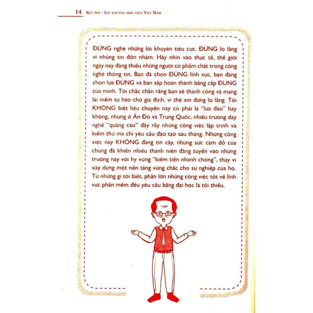 Những bài viết trong cuốn sách này rất phù hợp với các bạn trẻ Việt Nam, cung cấp cho các bạn những kiến thức cần thiết để vững bước trên hành trình gây dựng sự nghiệp cho riêng mình. Mong rằng các bạn tìm thấy ở đây câu trả lời cho những khó khăn đang gặp phải, cũng hy vọng các bạn tìm thấy tương lai của mình, góp phần cống hiến cho tương lai đất nước. Cuốn sách “Kết Nối” sẽ mang lại cho các bạn sự chuẩn bị đó. Nếu bạn là sinh viên sắp, hoặc mới tốt nghiệp, đang trên con đường tìm kiếm cho mình một công việc không chỉ để nuôi sống bản thân mà còn nuôi dưỡng những khát khao, hãy đi theo hành trình của cuốn sách này.