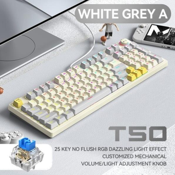 Bàn phím cơ T-WOLF T50 Blue Switch: lựa chọn nhỏ gọn cho game thủ Bàn phím cơ T50 Blue Switch có thiết kế 97 phím Blue Switch cao cấp với 4 màu sắc nịnh mắt, khả
