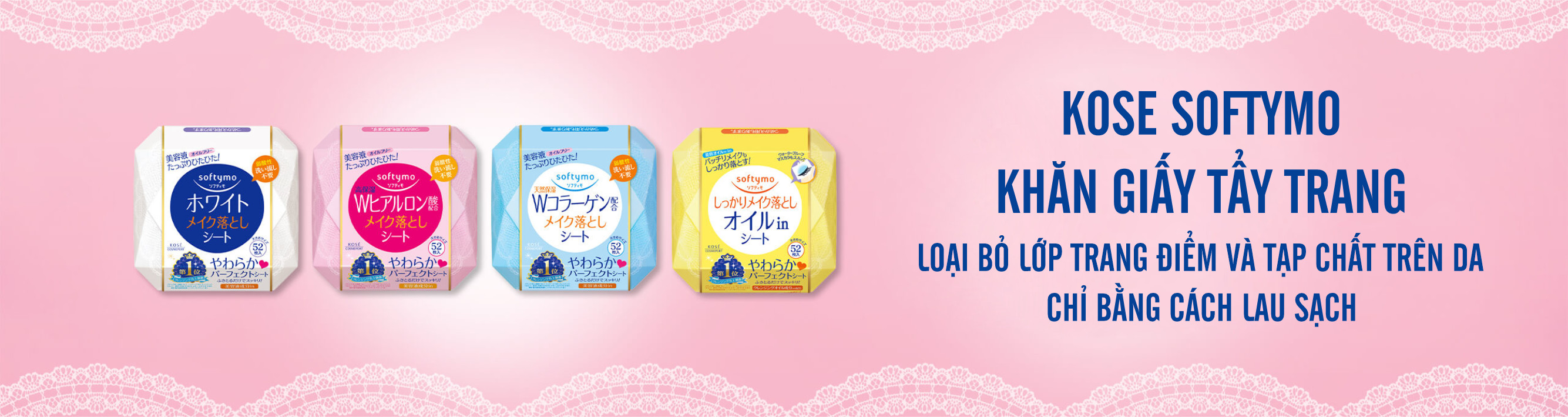 Khăn Giấy Tẩy Trang Dưỡng Ẩm Bổ Sung Collagen Kosé Softymo Cleansing Sheet C (52 Miếng) Thương hiệu: Kosé Xuất xứ: Nhật Bản Công dụng 5 in 1 tiện lợi: Tẩy trang, rửa mặt, làm
