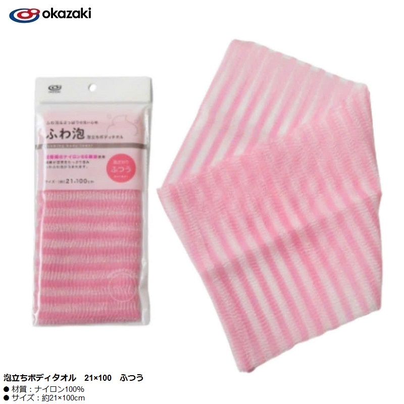 Khăn tắm tạo bọt mịn Okazaki 10×100㎝ THÔNG TIN SẢN PHẨM  Xuất xứ: Nhật Bản - Màu sắc: Màu hồng | Màu xanh(Giao ngẫu nhiên) - Kích thước: 10×100㎝ - Chất liệu:100% Polyester cao cấp