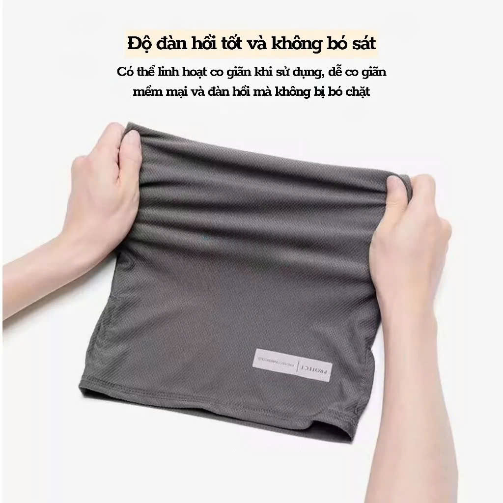 Khăn trùm vải thun lạnh Protect - Chất liệu : Vải thun lạnh - Size : Freesize thích hợp đa phần ai cũng vừa vặn. - Màu sắc: Đen, xám đậm, xám