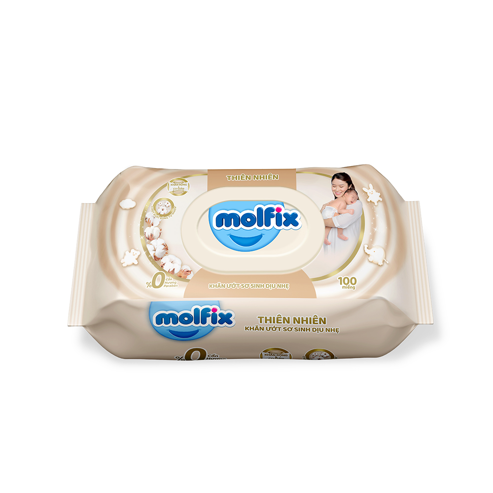 Khăn ướt Molfix Thiên nhiên Sơ Sinh Dịu Nhẹ - Gói 100 miếng Khăn ướt Molfix Thiên nhiên Sơ Sinh Dịu Nhẹ - Gói 100 miếng - Nhẹ nhàng làm sạch làn da mỏng