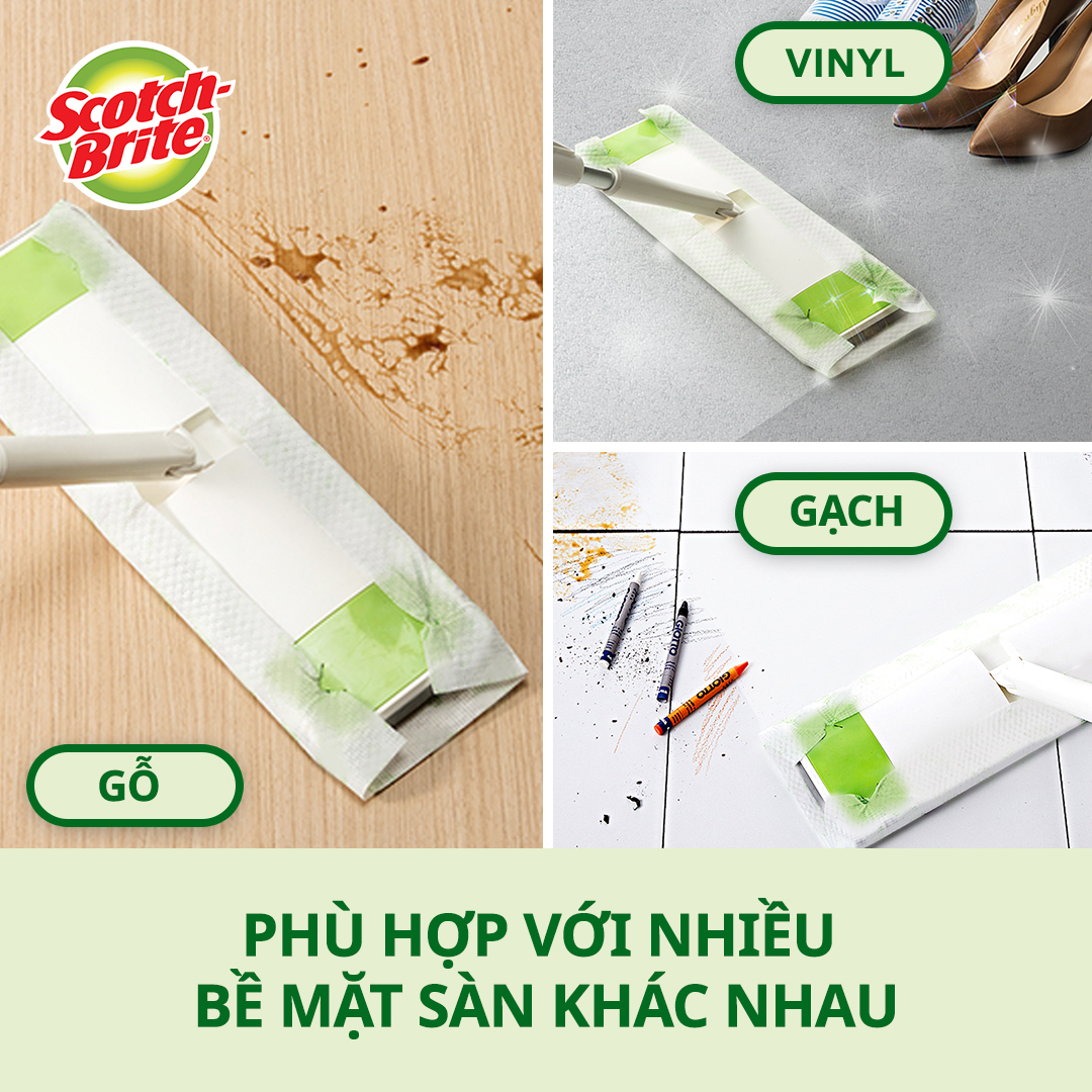 ✨Khăn ướt thay thế cây lau siêu tốc Scotch Brite 3M, 28 cm x 21cm, 8 miếng/gói, kháng khuẩn 99,9%, hương trà xanh thơm mát, tĩnh điện giúp hút và giữ bụi bẩn, tóc,… , phù hợp với nhiều bề mặt