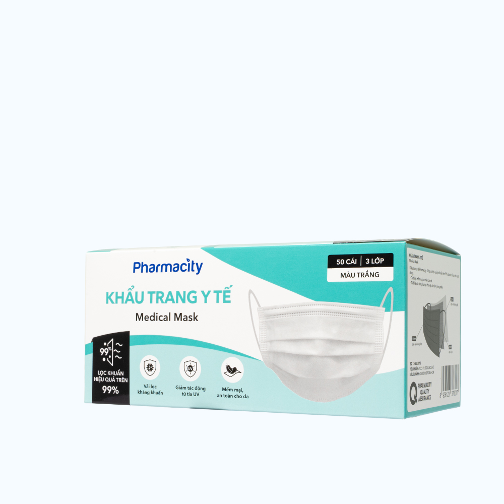 ✨Khẩu trang y tế 3 lớp Pharmacity (Hộp 50 cái) màu trắng