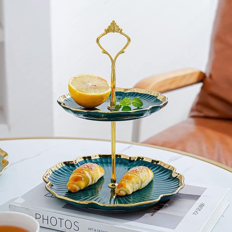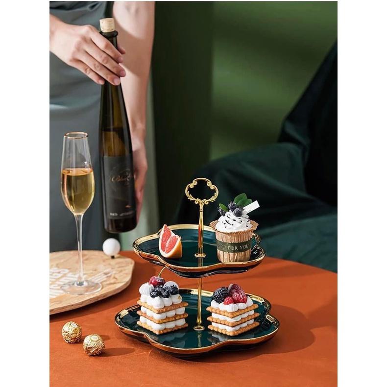 ✨KHAY ĐỰNG BÁNH KẸO HOA QUẢ BẰNG SỨ 2 TẦNG VIỀN VÀNG CAO CẤP SANG TRỌNG