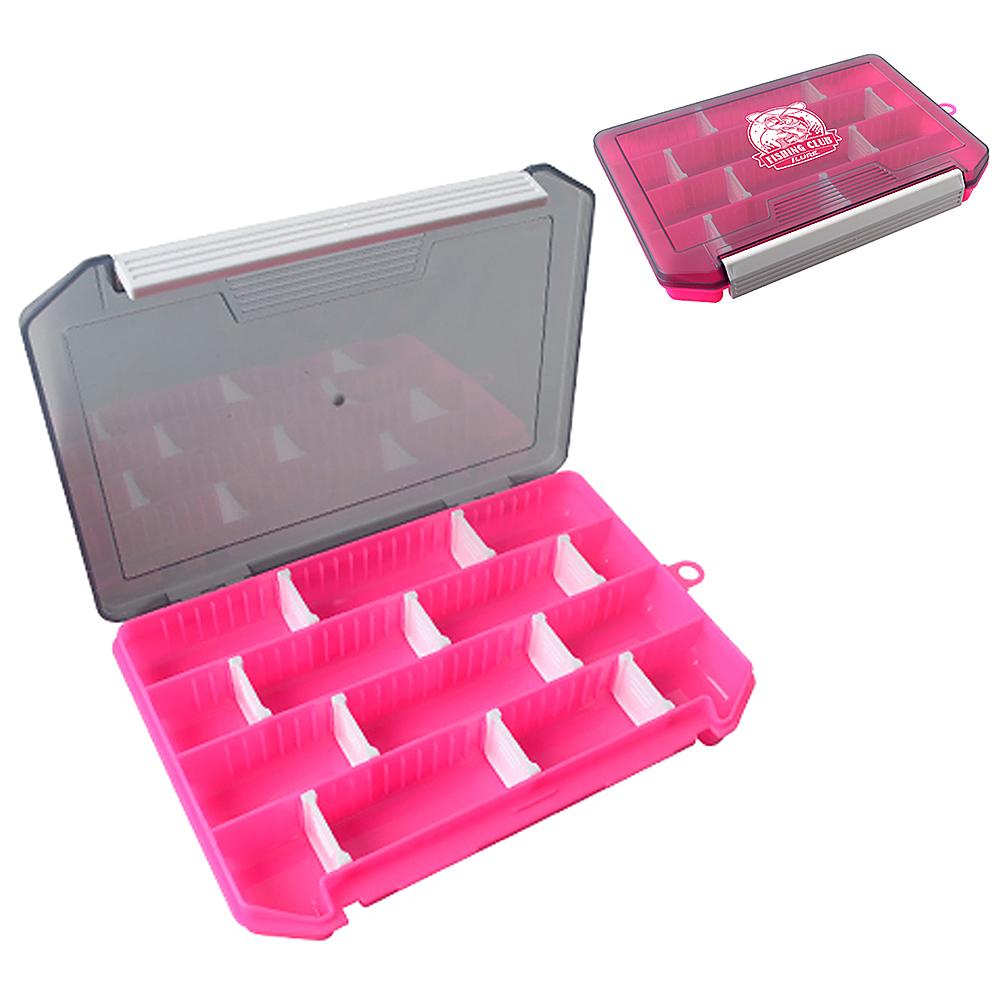 Double-sided fishing box helps keep your fishing accessories organized. Features: High-strength plastic material for durability. Double sided design keep your fishing accessories organized. Clear lids make the contents visible. Built-in drainage holes keep the box