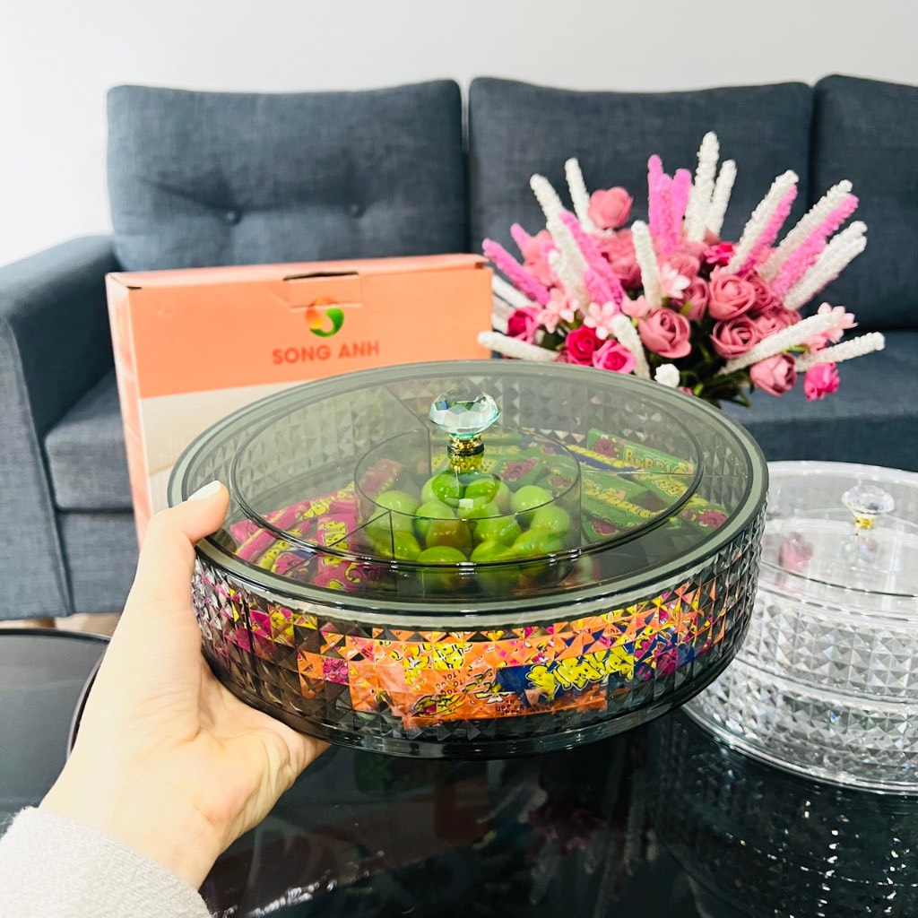 Khay Đựng Mứt Tết Vân Kim Cương, Hộp Đựng Mức Bánh Kẹo Tết Cao Cấp 1 Tầng 2 Tầng Xoay 360 Độ Song Anh- Hàng Chính Hãng - Khay đựng mứt bánh kẹo tết làm