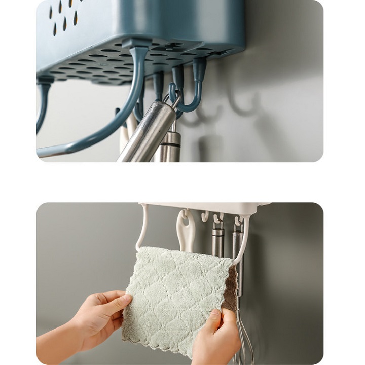Mô tả chi tiết: Giá treo dụng cụ nhà bếp đa năng giúp bạn sắp xếp gọn gàng các vật dụng như dao, kéo, muỗng, thìa, phới lồng, bàn chải rửa chén, và nhiều loại