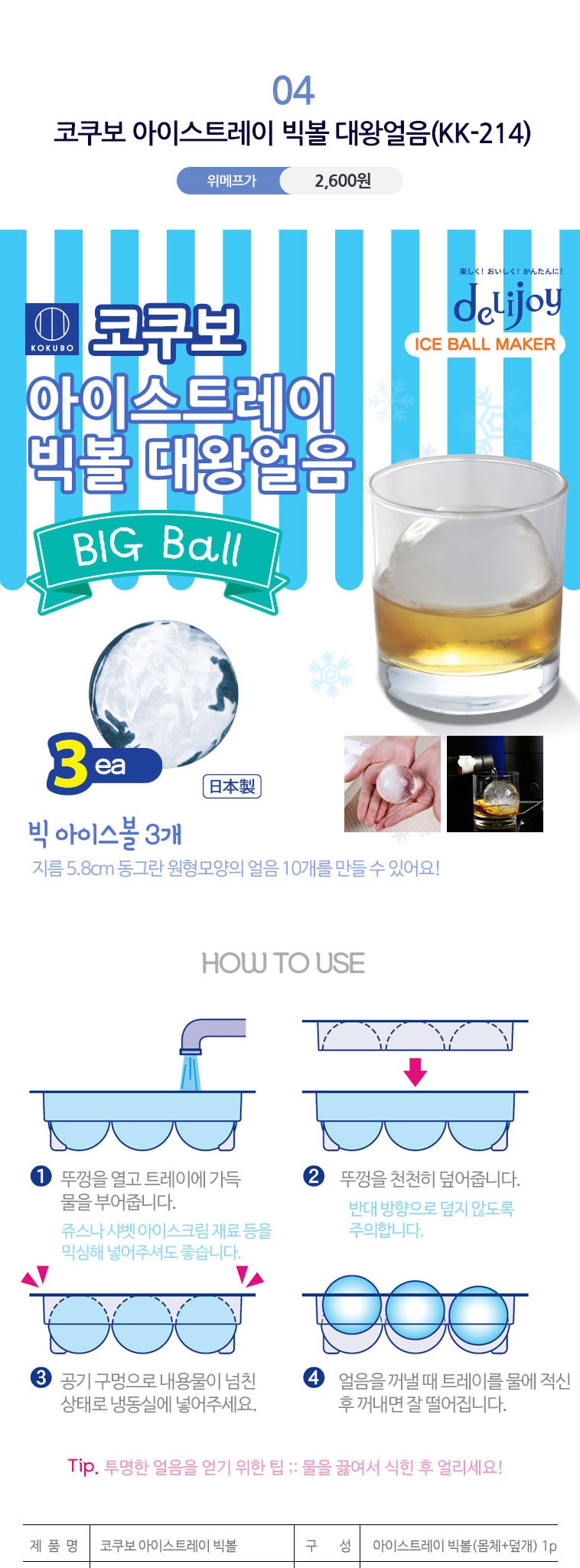 KHAY LÀM ĐÁ 4 VIÊN SIZE LỚN COOL LAND ICE - HÀNG NỘI ĐỊA NHẬT BẢN (Sản phẩm được nhập khẩu chính hãng từ Nhật Bản) ■ Xuất xứ: Nhật Bản / MADE IN JAPAN ■ NSX: Pearl Metal