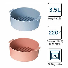 Khay silicone Lock&Lock dành cho nồi chiên không dầu và lò vi sóng 3.5L và 5L, CKB002 CKB003 Chất liệu : Silicone chịu nhiệt độ cao trong lò chiên không dầu và lò vi sóng Màu sắc : Hồng , xanh biển Dung tích : 3.5L : 210 x 185 x 70 mm 5L : 238 x 210 x 70mm Sản phẩm sử dụng an toàn trong lò nướng , lò chiên không dầu , lò vi sóng Khả năng chịu nhiệt lên đến 220 độ C Có thể rửa sạch tái sử dụng nhiều lần mà không cần dùng giấy nến , góp phần bảo vệ môi trường Được thiết kế để dầu chảy xuống tự nhiên nhờ vào các khe rãnh , tập trùng vào vành xung quanh khay , giúp thực phẩm có thể giữ được độ ẩm và giòn , tươi ngon Vệ sinh sản phẩm : chỉ cần lộn ngược lại khay và vệ sinh bình thường Lưu ý :