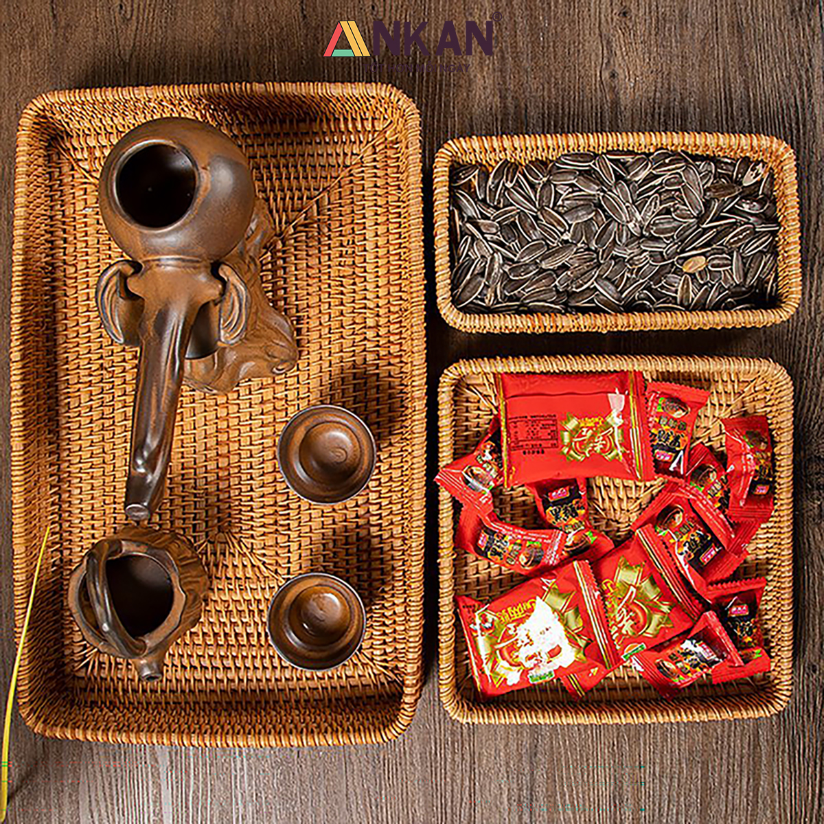 Khay Mây Tre Đan ANKAN – Decor Vintage Thủ Công Đựng Trái Cây Bánh Kẹo Mỹ Phẩm