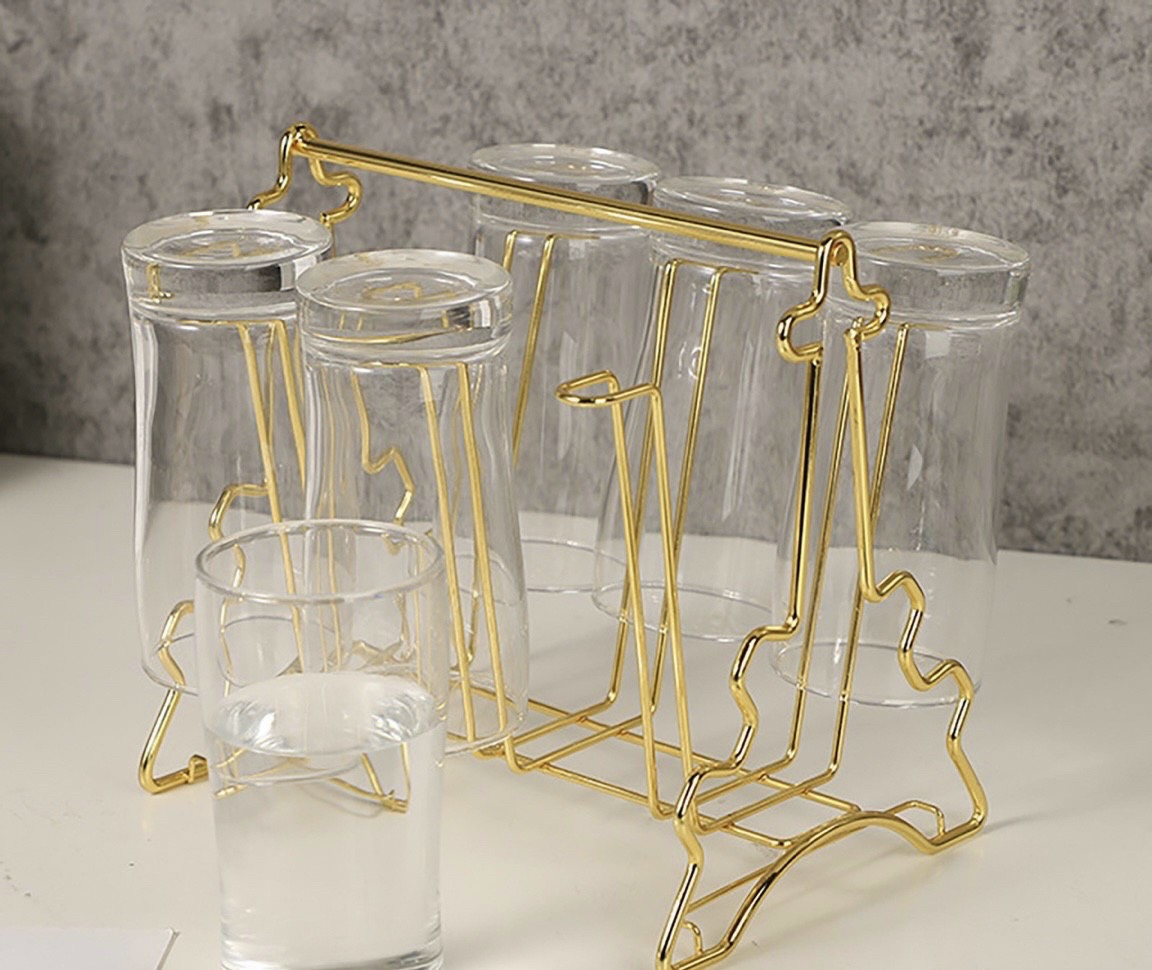Giá úp ly, kệ úp cốc, chất liệu hợp kim mạ vàng sang trọng, Kèm khay hứng nước