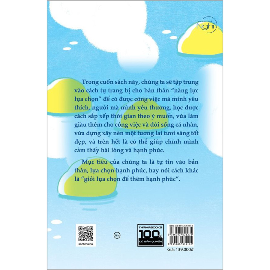Trong cuốn sách này, chúng ta sẽ tập trung vào cách tự trang bị cho bản thân “năng lực lựa chọn” để có được công việc mà mình yêu thích, người mà mình yêu thương, học được cách sắp xếp thời gian theo ý muốn, vừa làm giàu thêm cho công việc và đời sống cá nhân, vừa dựng xây nên một tương lai tươi sáng tốt đẹp, và trên hết là, có thể giúp chính mình cảm thấy hài lòng và hạnh phúc.