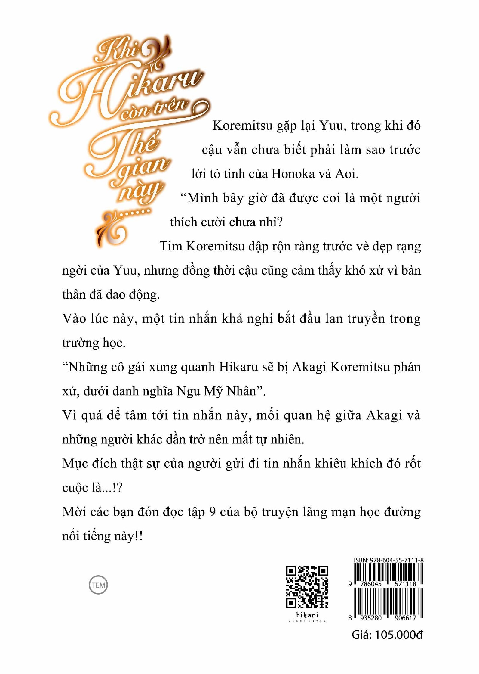 Khi Hikaru còn trên thế gian này…… là series light novel tiếp theo của bộ đôi tác giả Nomura Mizuki và họa sĩ Takeoka Miho, bộ đôi nổi tiếng đã cùng tạo nên một Cô gái văn chương sâu sắc, li kì và nhận được sự yêu thích từ đông đảo bạn đọc trên khắp thế giới. Khi Hikaru còn trên thế gian này…… là một trong những bộ light novel hiếm hoi thuộc thể loại lãng mạn, drama không có bản chuyển thể anime nhưng vẫn thu hút được sự quan tâm, tranh luận sôi nổi của độc giả. Một series truyện tranh ngắn chuyển thể lại tập 1 của Khi Hikaru còn trên thế gian này…… với tên gọi Aoi – cùng tên với tập 1 của series light novel. Series Khi Hikaru còn trên thế gian này…… gồm 10 tập, lấy cảm hứng từ trường thiên tiểu thuyết “Truyện kể Genji” cực kỳ nổi tiếng của văn học Nhật Bản thời Heian, mỗi tập truyện sẽ tập trung vào một nhân vật riêng biệt, lấy nguyên mẫu từ những người tình mà hoàng tử Genji yêu tha thiết, tuy nhiên tuyến nhân vật chính vẫn được giữ nguyên xuyên suốt cả 10 tập.