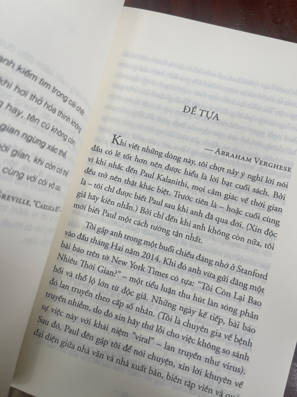 “Khi hơi thở hóa thinh không” là cuốn hồi kí được viết bởi Paul Kalanithi – một bác sĩ phẫu thuật não và cũng là một bệnh nhân ung thư phổi giai đoạn cuối. Paul viết cuốn sách này trong những tháng cuối cùng của cuộc đời anh – khi mà anh đang đối mặt trực tiếp với cái chết.