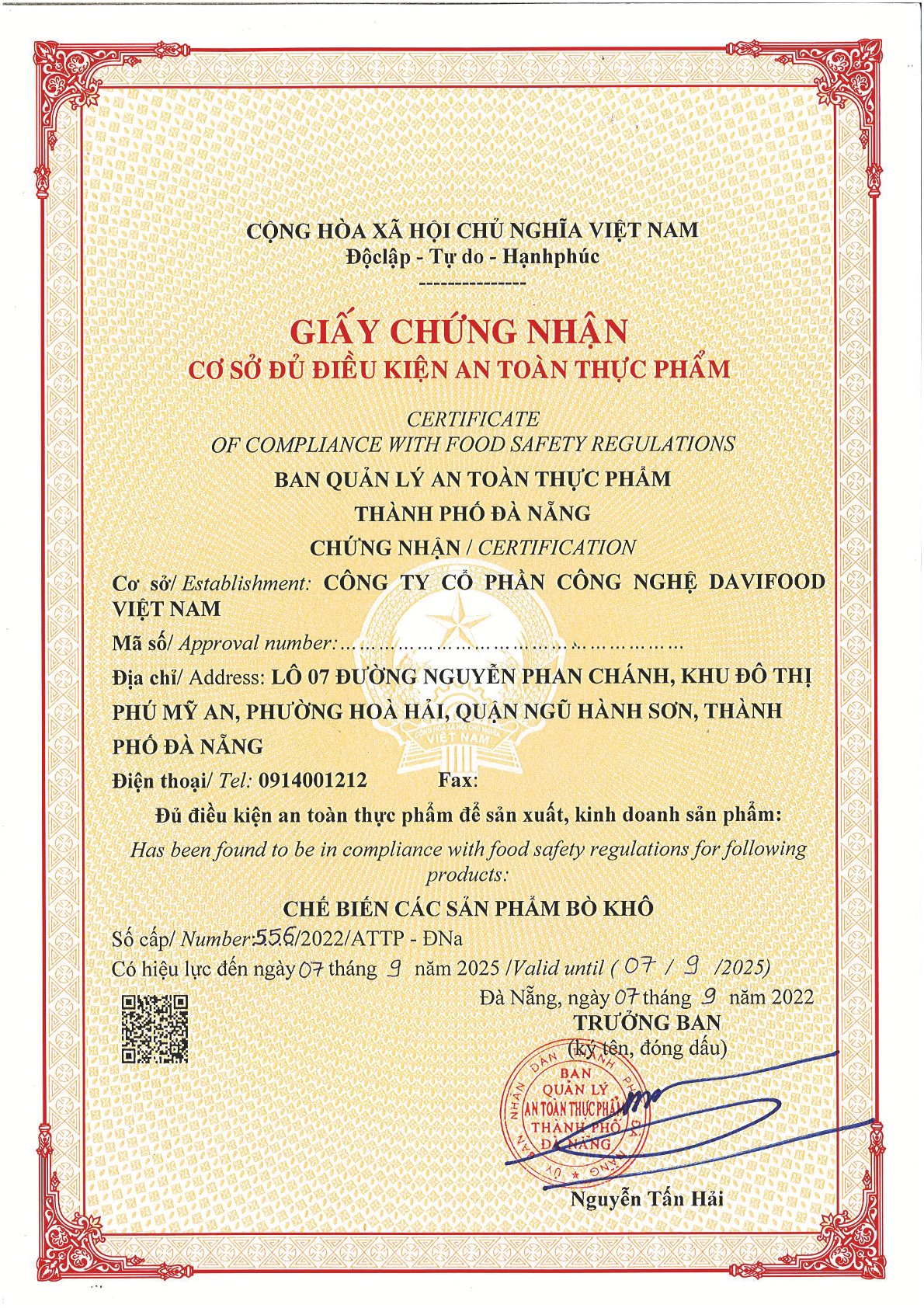 - Khô bò KINBE BEEF JERKY là sản phẩm của Công ty Cổ phần Công nghệ Davifood Việt Nam nghiên cứu và phát triển; được làm từ 100% thịt bò tươi, kết hợp với các loại gia vị hoàn toàn tự nhiên được lựa chọn kỹ lưỡng, trên dây chuyền thiết bị công nghệ hiện đại khép kín, theo tiêu chuẩn HACCP, giữ nguyên hương vị và giá trị dinh dưỡng, an toàn vệ sinh thực phẩm.