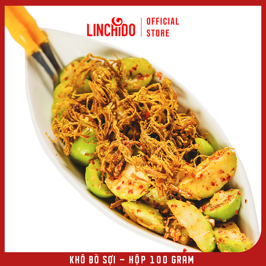 KHÔ BÒ SỢI MỀM DAI Xuất xứ: Việt Nam. Hạn sử dụng: In trên bao bì Quy cách: Bịch 100G Thành phần: + Thịt bò đùi sạch 100%. + Ớt, tỏi, sả, ngũ vị hương