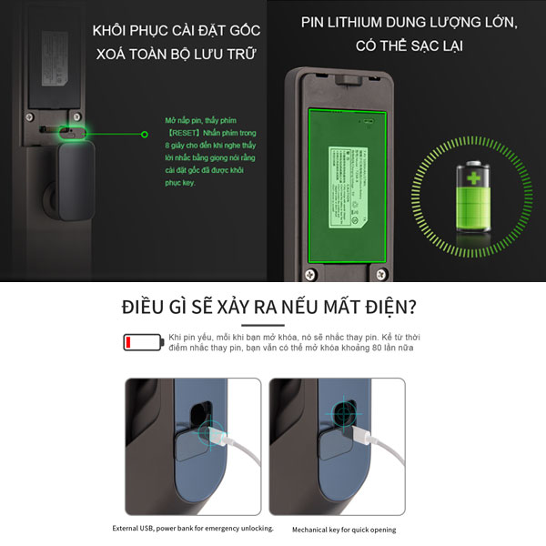 - Mở khóa bằng vân tay