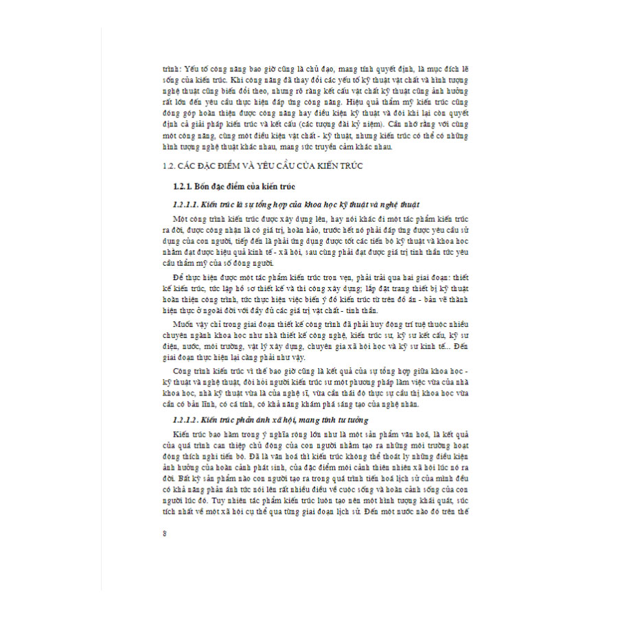 Kiến trúc là một trong những ngành nghề chuyên môn mang tính kỹ thuật và nghệ thuật cao. Kiến trúc bao giờ củng là một sản phẩm của sự phát triển văn hóa và xã hội. Nó phản ánh lôi sống, trình độ phát triển chung của đất nước, nhưng ngược lại kiến- trúc củng có ảnh hưởng, tác động quan- trọng đến- sự phát triển của cá nhân- và cộng đồng. Nhìn chung, kiến trúc là một vấn đề quan trọng gắn bó với chất lượng cuộc sống và lối sống xã hội mới, góp phần đắc lực vào công việc giáo dục nâng cao dân trí, văn hóa sông vì xã hội văn- minh và trở thành kiến thức không the thiếu được của mọi người. Kiến trúc vì thê là môn học bắt buộc trong chương trình đào tạo kiến trúc sư và kỹ sư các ngành liên quan đến lĩnh vực xây dựng và tô chức môi trường sống.