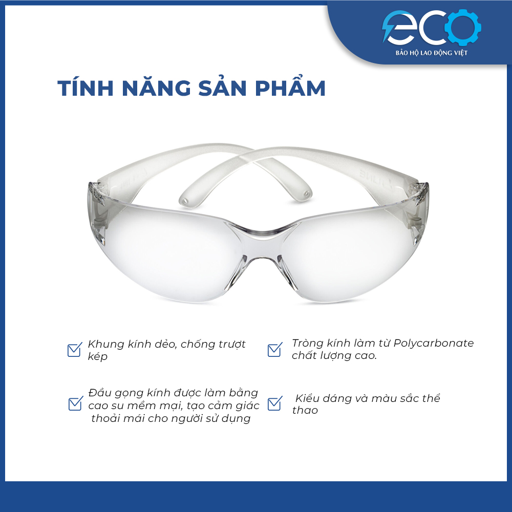 - Thiết kế ôm theo mặt, gọng chống trượt kép chống rớt kính khi làm việc hoặc di chuyển mạnh.