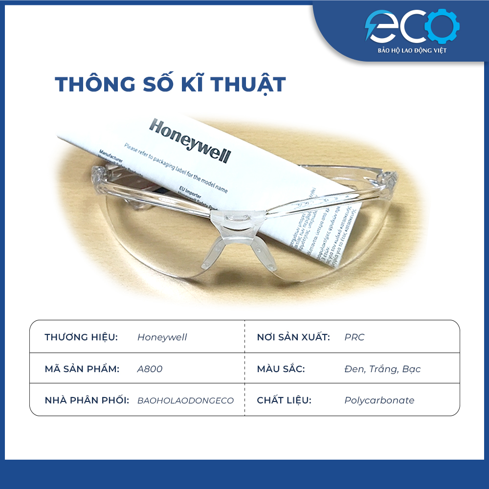 ✨Kính bảo hộ Honeywell A800 chống bụi, tia UV chống va đập và bảo vệ mắt toàn diện