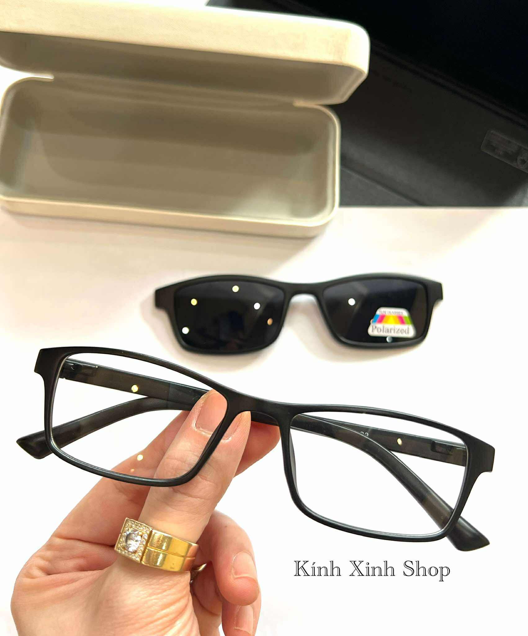 Mua tại Tiktok- Kính Cận Râm Clip On, Gọng Kính Cận Mắt Vuông nhỏ 2in1 Gọng Nhựa Đen Ultem