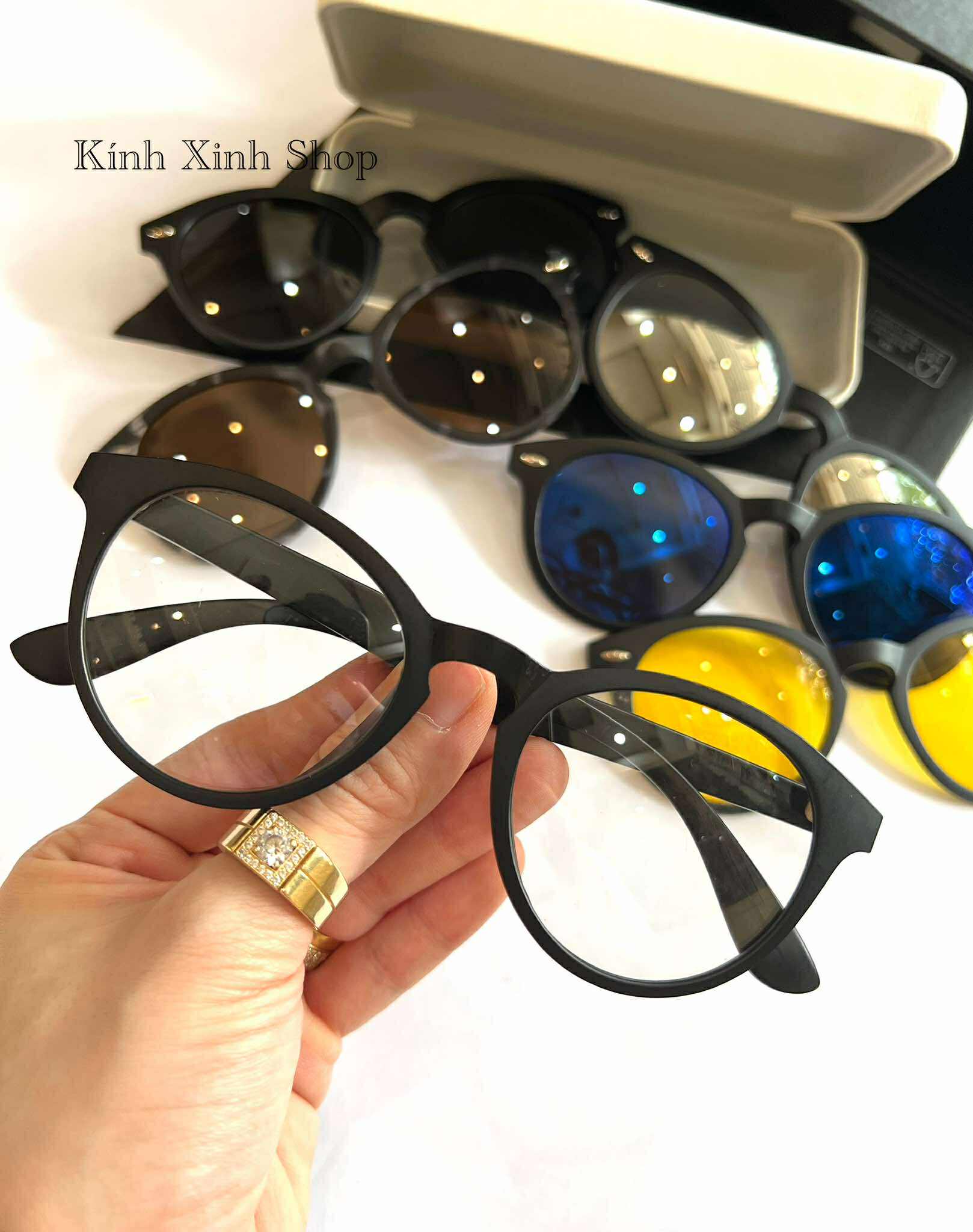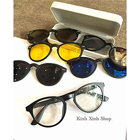 ✨Kính Cận Râm Nhiều Tròng 6in1 Đa Năng Dáng Mắt Tròn Gọng Nhựa Màu Đen Thiết Kế Đơn Giản Cho Nam Nữ