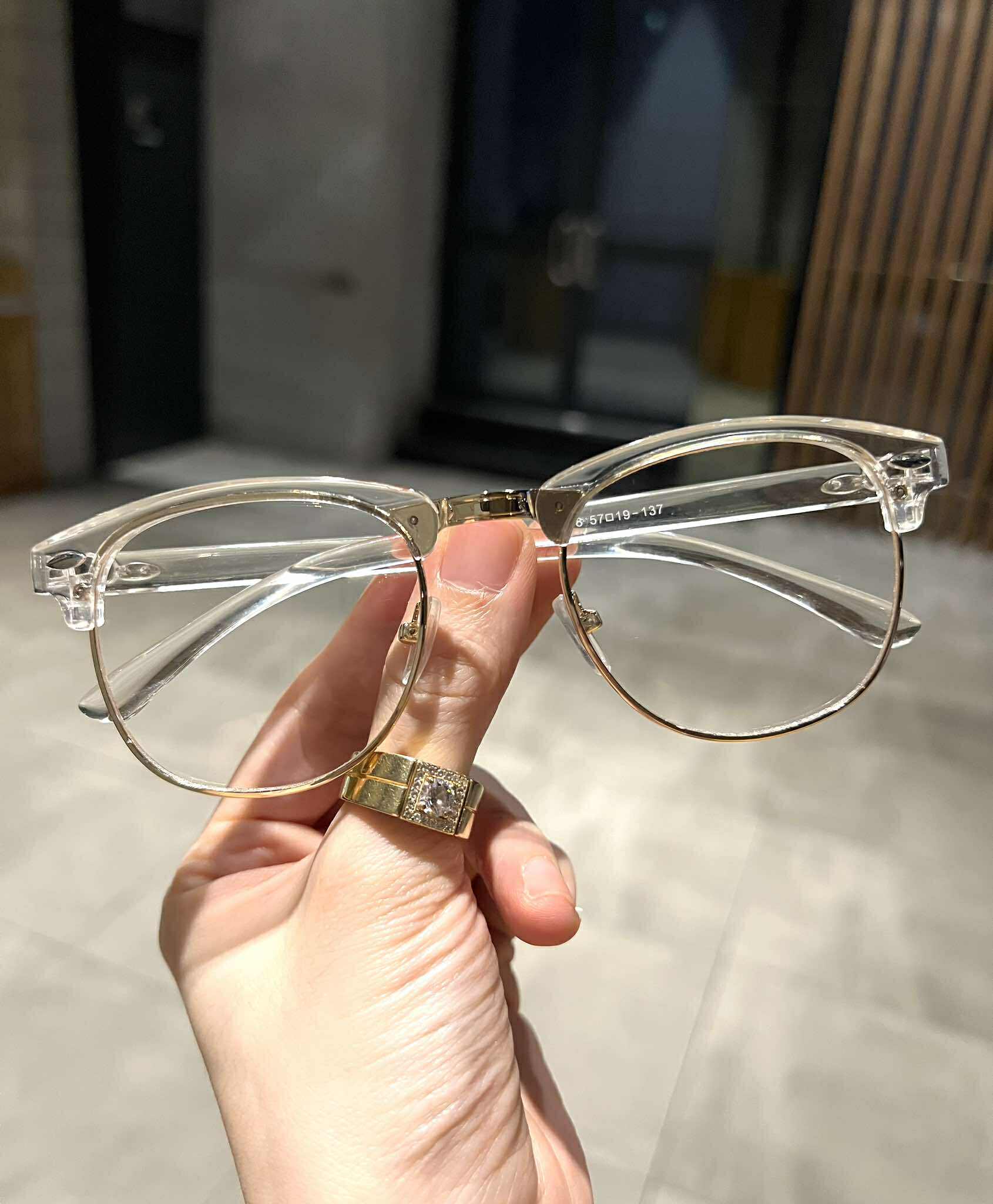 Kính Trong suốt dáng Club nửa viền unisex cho nam nữ - Giới tính: Nam và Nữ - Kiểu dáng: Freeform - Chất liệu: Nhựa - Tặng hộp đựng và khăn lau kèm theo -