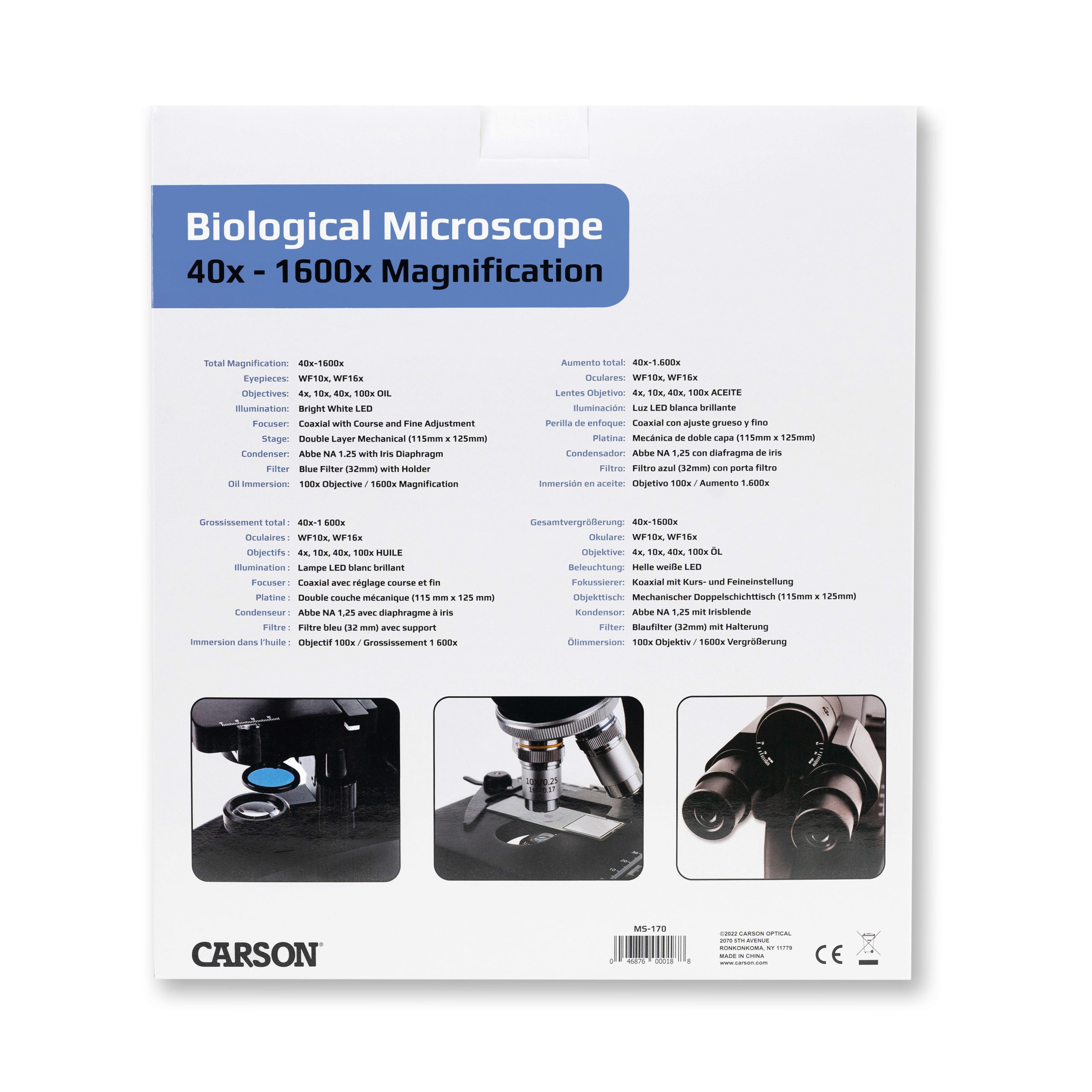 Kính hiển vi hai mắt cao cấp soi tinh trùng, vi khuẩn, tế bào Carson MS-170 (100-1600X) (Hãng Carson - Mỹ). Kính hiển vi hiện đại này được thiết kế để mang lại hiệu suất