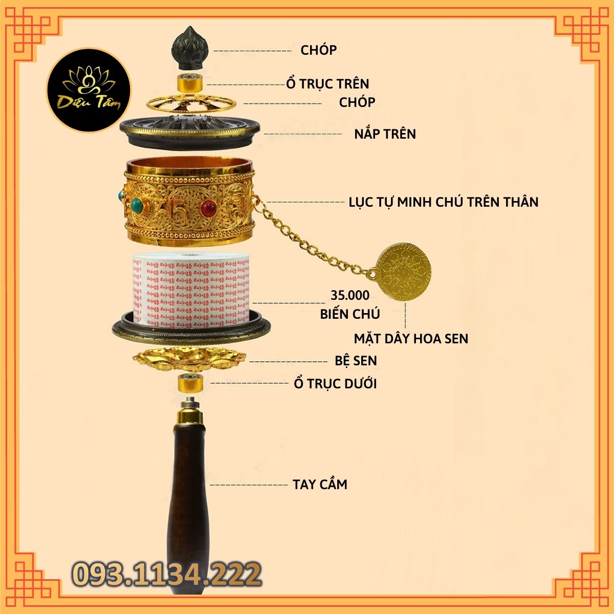 Kinh Luân cầm tay Om Mani Padme Hum - Bánh xe Mani Kinh Luân Tây Tạng cầu bình an, tài lộc