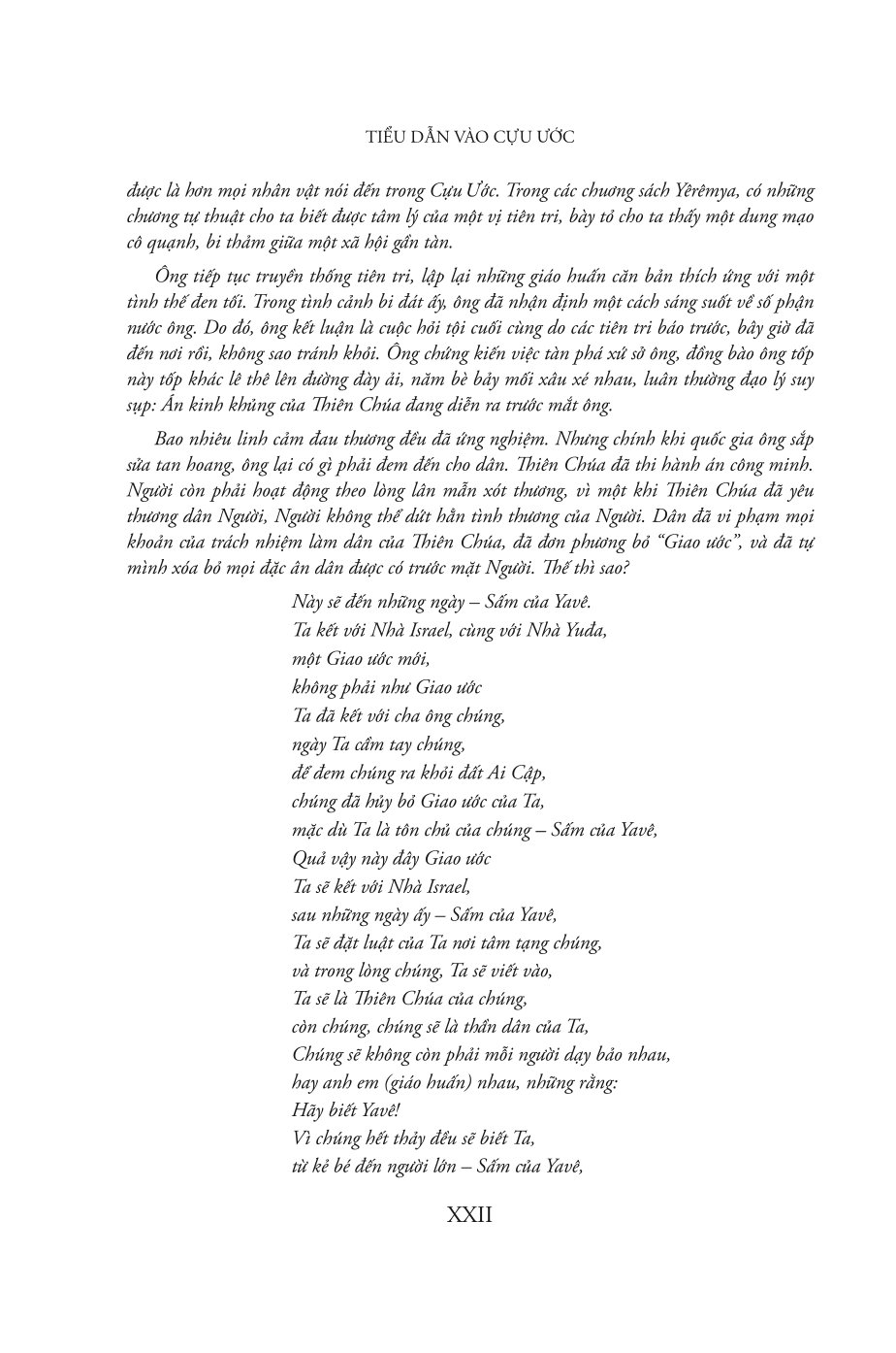 Cựu Ước là Giao ước cũ của người Hebrew (nay gọi là Do Thái) với Thiên Chúa, gồm 46 cuốn chia 4 phần, chứa đựng vũ trụ quan, nhân sinh quan cổ xưa nhất của nhân loại, do nhiều người viết suốt từ năm 1.200 đến năm 100 trước CN. Còn Tân Ước là Giao ước mới của các tín đồ Ki-tô giáo với Thiên Chúa, nguyên văn từ các cổ bản Hi Lạp, ra đời một thế kỷ sau khi xuất hiện đạo Ki-tô, trình bày cuộc đời và học thuyết của Chúa Yêsu.