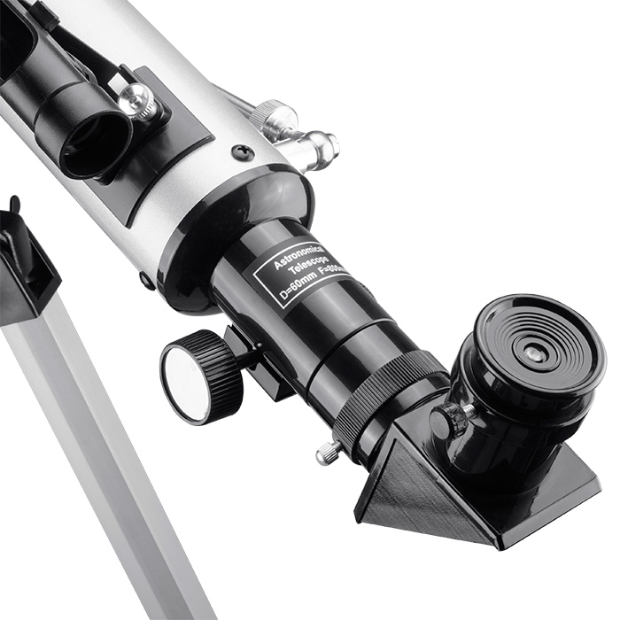 Ống quang học có lớp hoàn thiện màu bạc kim loại mang đến một kính viễn vọng đẹp và hấp dẫn