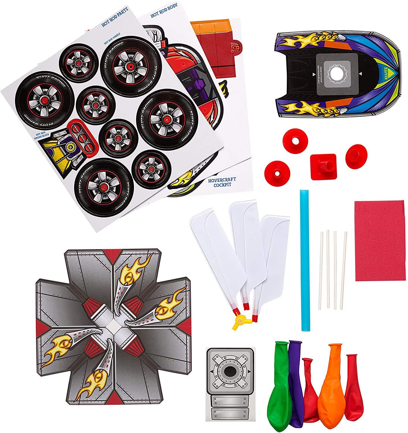 Air Power makes rocket science as easy as blowing up a balloon and letting go. This book and science kit in one delivers rocket-propelled fun with four easy-to-assemble vehicles -- race a sturdy cardstock hot rod across the floor, glide a hovercraft over the dining table, take flight with a helicopter, and blast off with an only-from-Klutz balloon-powered rocket. Tweak, tinker, and experiment to make your balloon-powered craft go as fast as can be. Our book contains super-clear building instructions, scientific principles, and real-world examples that make rocketry and jet propulsion simple. Air Power brings a breath ? make that a blast ? of fresh air to Sir Isaac Newton?s famous Laws of Motion. It turns out that rocket science is way too much fun to leave to the rocket scientists. Comes with: 48 page instruction book, 4 plastic parts (2 mouthpieces, thrust vent for hovercraft, blast cap), straws for blast pipes, 8 wheels, 4 axles, one hot-rod body, one hovercraft body, rocket fins and tube, helicopter blade assembly, three 9" balloons, two 6" balloons. Note: balloons contain Latex .
