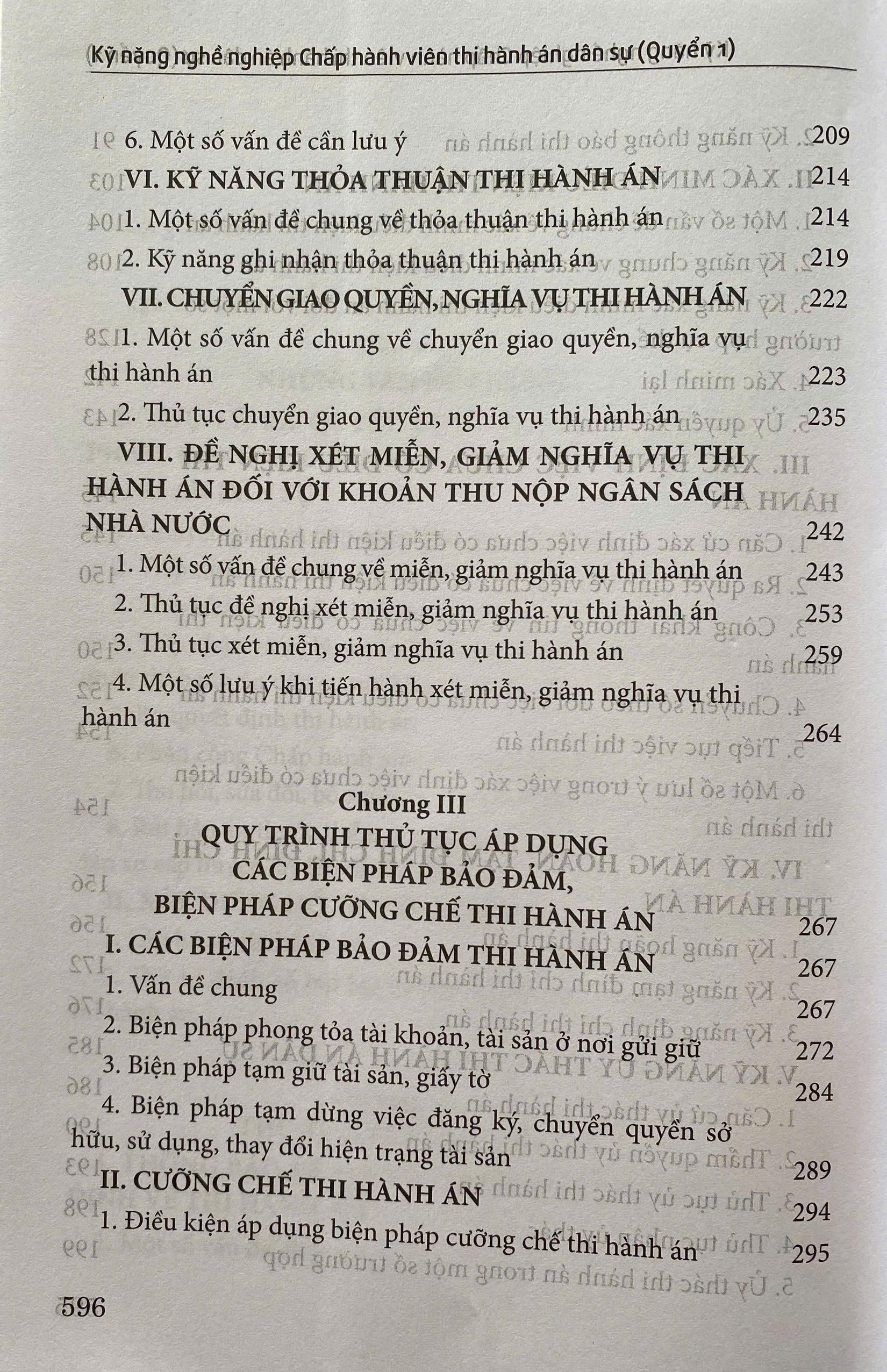 Nhà Xuất bản Tư pháp và Nhóm tác giả: Ths. GV.Hoàng Thị Thanh Hoa, Ths. Hồ Quân Chính, TS. Nguyễn Văn Nghĩa xin trân trọng giới thiệu tới Quý bạn đọc cuốn sách mới “Kỹ năng nghề nghiệp Chấp hành viên Thi hành án Dân sự” Đây là cuốn sách chứa đựng những kỹ năng quan trọng và thiết yếu có giá trị tham khảo và ứng dụng cao đối với Chấp hành viên Thi hành án Dân sự trong quá trình tổ chức thi hành án. Cuốn sách dày 600 trang, kết cấu được xây dựng bám theo thủ tục THADS trên cơ sở cập nhật tất cả các văn bản pháp luật về THADS và các lĩnh vực pháp luật khác có liên quan được áp dụng đối với từng thủ tục một cách chi tiết giúp người đọc dễ dàng tra cứu. Những giá trị quý báu mà cuốn sách mang đến cho bạn đọc: ứng với mỗi tác nghiệp của Chấp hành viên đều được chỉ rõ cơ sở pháp lý; thủ tục thi hành án được phân tích chặt chẽ trên cơ sở quy định của pháp luật; cùng với những điểm nhấn cần lưu ý khi áp dụng pháp luật và những kinh nghiệm thực tiễn vào việc tổ chức thi hành án; trang bị những “kỹ năng mềm” cần thiết trong quá trình tổ chức thi hành án. Bên cạnh ý nghĩa là một cuốn sách “kỹ năng nghề” của Chấp hành viên, cuốn sách còn có giá trị tham khảo đối với những người làm công việc chuyên ngành Tư pháp như Kiểm sát viên, Thẩm phán, Thừa phát lại… và các học viên chuyên ngành Luật cũng như đông đảo Quý độc giả. Nhóm tác giả hy vọng cuốn sách “Kỹ năng nghề nghiệp Chấp hành viên thi hành án dân sự” sẽ là người bạn đồng hành tin cậy đối với đồng nghiệp công tác trong hệ thống Thi hành án dân sự và đông đảo Quý bạn đọc quan tâm!