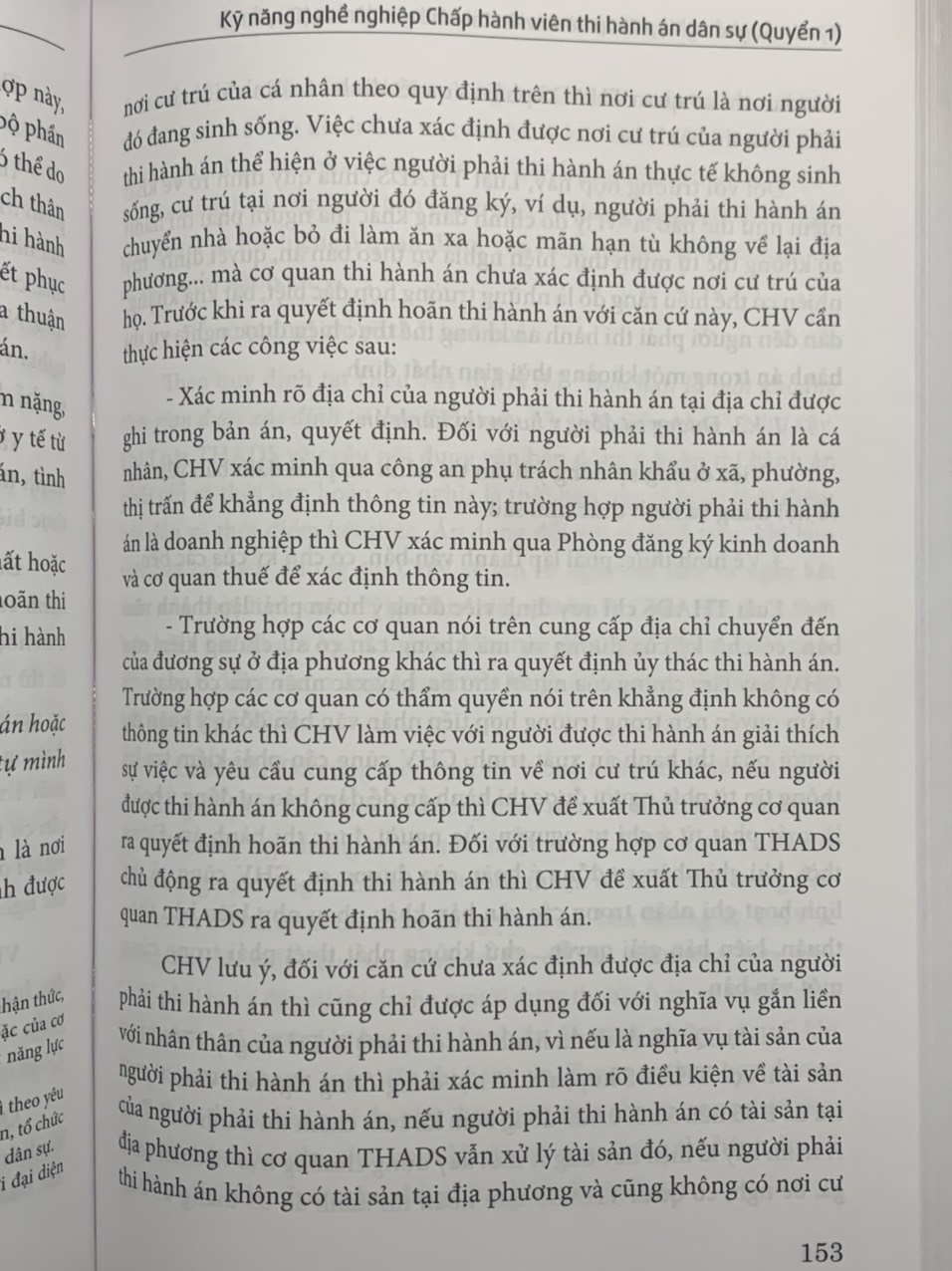 Nhà Xuất bản Tư pháp và Nhóm tác giả: Ths. GV.Hoàng Thị Thanh Hoa, Ths. Hồ Quân Chính, TS. Nguyễn Văn Nghĩa xin trân trọng giới thiệu tới Quý bạn đọc cuốn sách mới “Kỹ năng nghề nghiệp Chấp hành viên Thi hành án Dân sự” Đây là cuốn sách chứa đựng những kỹ năng quan trọng và thiết yếu có giá trị tham khảo và ứng dụng cao đối với Chấp hành viên Thi hành án Dân sự trong quá trình tổ chức thi hành án. Cuốn sách dày 600 trang, kết cấu được xây dựng bám theo thủ tục THADS trên cơ sở cập nhật tất cả các văn bản pháp luật về THADS và các lĩnh vực pháp luật khác có liên quan được áp dụng đối với từng thủ tục một cách chi tiết giúp người đọc dễ dàng tra cứu. Những giá trị quý báu mà cuốn sách mang đến cho bạn đọc: ứng với mỗi tác nghiệp của Chấp hành viên đều được chỉ rõ cơ sở pháp lý; thủ tục thi hành án được phân tích chặt chẽ trên cơ sở quy định của pháp luật; cùng với những điểm nhấn cần lưu ý khi áp dụng pháp luật và những kinh nghiệm thực tiễn vào việc tổ chức thi hành án; trang bị những “kỹ năng mềm” cần thiết trong quá trình tổ chức thi hành án. Bên cạnh ý nghĩa là một cuốn sách “kỹ năng nghề” của Chấp hành viên, cuốn sách còn có giá trị tham khảo đối với những người làm công việc chuyên ngành Tư pháp như Kiểm sát viên, Thẩm phán, Thừa phát lại… và các học viên chuyên ngành Luật cũng như đông đảo Quý độc giả. Nhóm tác giả hy vọng cuốn sách “Kỹ năng nghề nghiệp Chấp hành viên thi hành án dân sự” sẽ là người bạn đồng hành tin cậy đối với đồng nghiệp công tác trong hệ thống Thi hành án dân sự và đông đảo Quý bạn đọc quan tâm! Giá sách là 260.000 đồng/cuốn.