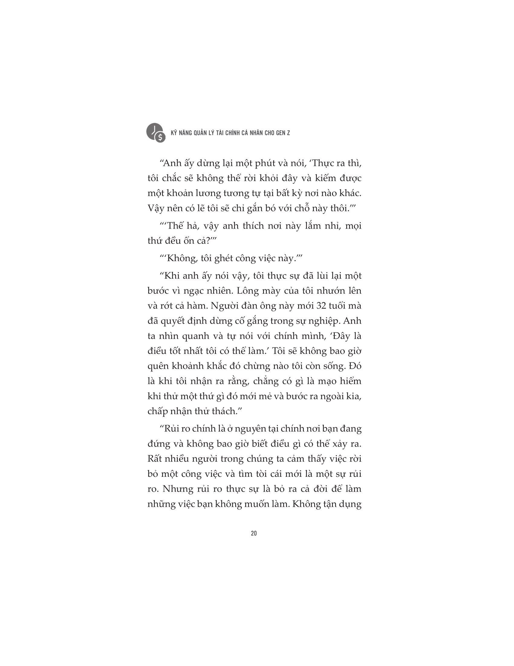 Nếu bạn đang gặp phải những tình trạng trên, cuốn sách Kỹ năng quản lý tài chính cá nhân cho Gen Z cung cấp 10 nguyên tắc để thay đổi cách nhìn nhận về thực trạng của bản thân, từ đó giúp độc giả, đặc biệt là các độc giả gen Z hình thành tư duy mới về tiền bạc, quản lý tài chính cá nhân và thành công.