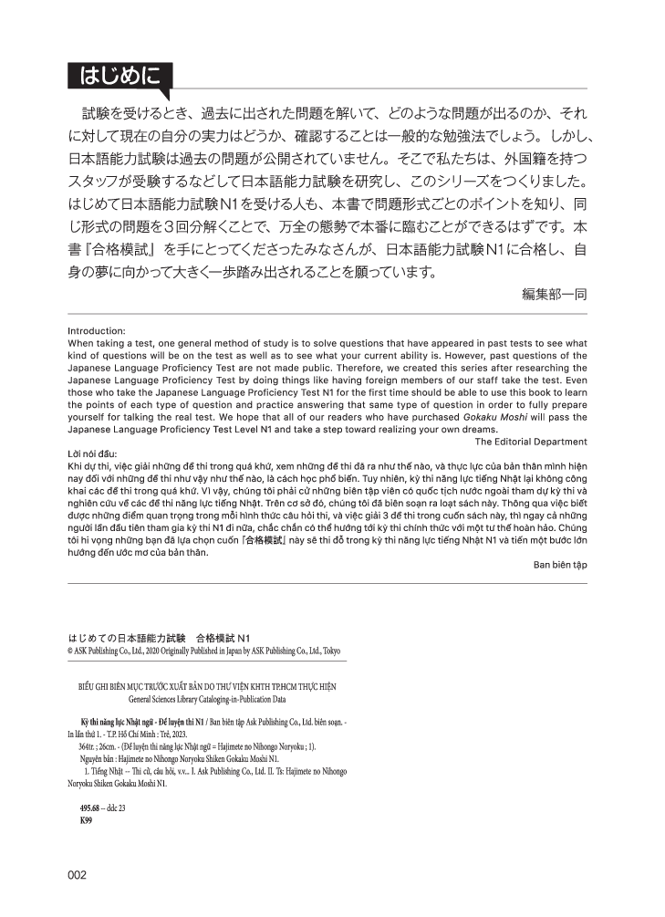 Tác giả: SASAKI HITOKO & MATSUMOTO NORIKO Khổ sách: 13x19cm Số trang: 294 Giới thiệu tóm tắt tác phẩm: Cuốn sách này dành cho: - Người đang ôn thi năng lực Nhật ngữ N1 -