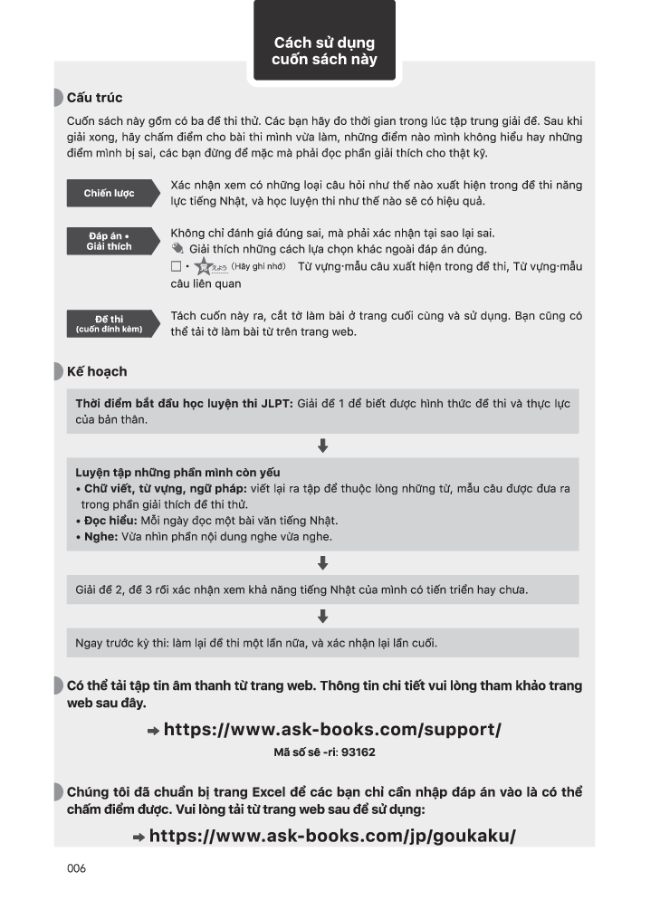 - Bao gồm 3 đề luyện thi Kỳ thi năng lực Nhật ngữ cấp độ N1 - N5. Giải 3 bộ đề có hình thức hoàn toàn giống với kỳ thi thật, bạn đã trang