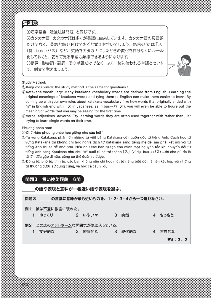 Giải thích các từ vựng, cách diễn đạt xuất hiện trong đề luyện thi cũng như các từ vựng, cách diễn đạt liên quan.