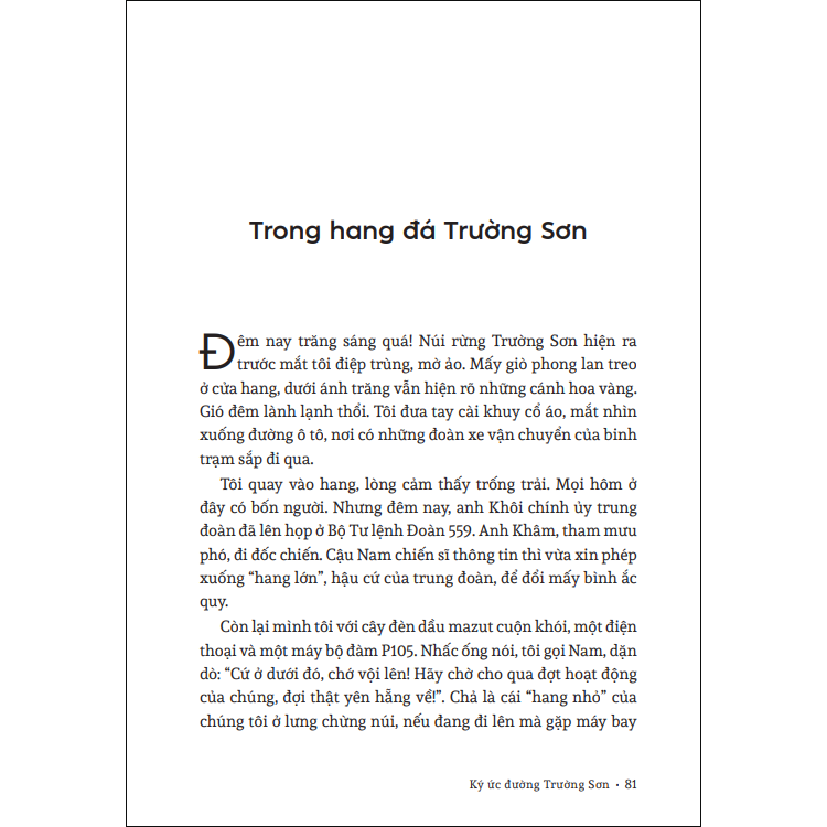Tác giả là Trung đoàn phó, phụ trách lực lượng tiền phương của Trung đoàn 227 pháo Phòng không ở Tây Trường Sơn – ngày đêm gắn bó với con đường trong những thời điểm ác liệt của cuộc chiến, nên các sự kiện, các nhân chứng được ông ghi lại khá chân thật và xúc động.