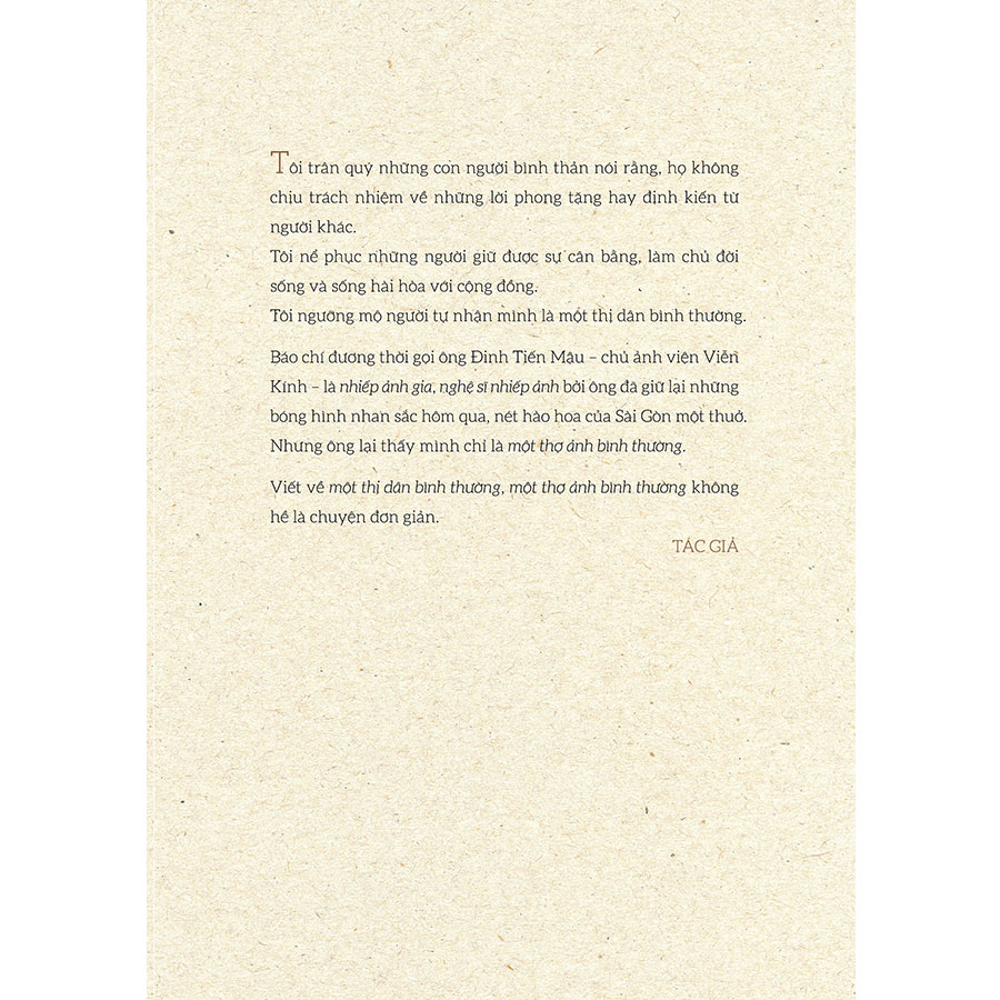 Ông Đinh Tiến Mậu, nhân vật chính của câu chuyện – chủ hiệu ảnh Viễn Kính tiếng tăm của Sài Gòn, kể về sản nghiệp của một đời thợ ảnh cứ như không có chuyện vậy, nhẹ tênh, phẳng phiu, liền lạc. Như chẳng có chuyện gì, tay thợ ảnh ấy từng trở thành chứng nhân của lịch sử hay có ảnh đăng trên những trang báo hàng đầu. Như chẳng có chuyện gì, ảnh viện của ông là chỗ chụp chân dung của các ngôi sao hàng đầu làng giải trí miền Nam.