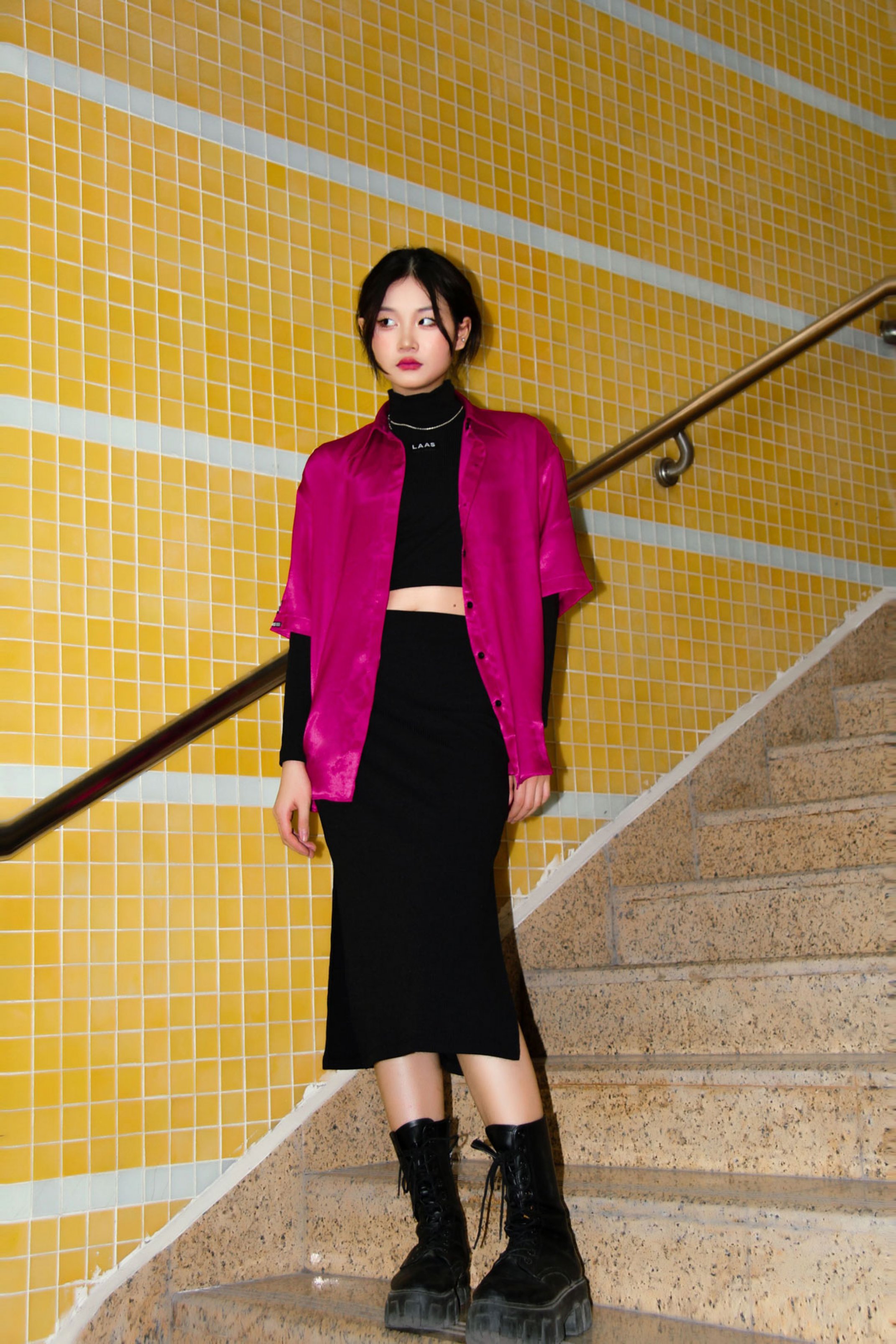 CHẤT LIỆU LỤA ÁO MÀU XANH LÁ / HỒNG / ĐỎ / ĐEN / XÁM / TRẮNG ÁO SOMI NẸP GIẤU NÚT FORM RỘNG FREESIZE ĐIỂM NHẤN 1 BÊN TAY PHẢI ÁO GẮN TAG LOGO
