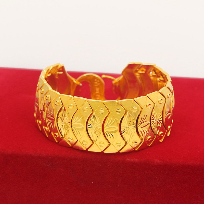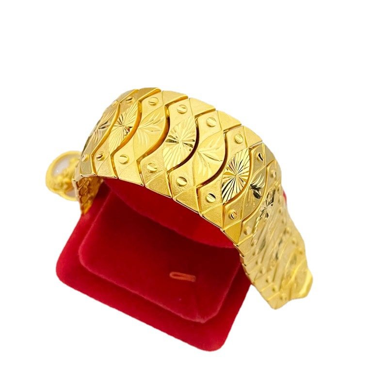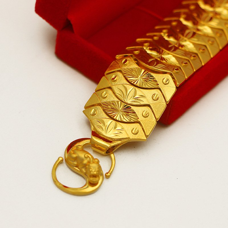 Chất liệu: hợp kim đồng mạ 24k tạo độ sáng bóng. Sở hữu công nghệ mạ tĩnh điện mang lại độ bền cao cho sản phẩm Chiều rộng mặt dây 3.0 cm kết hợp độ