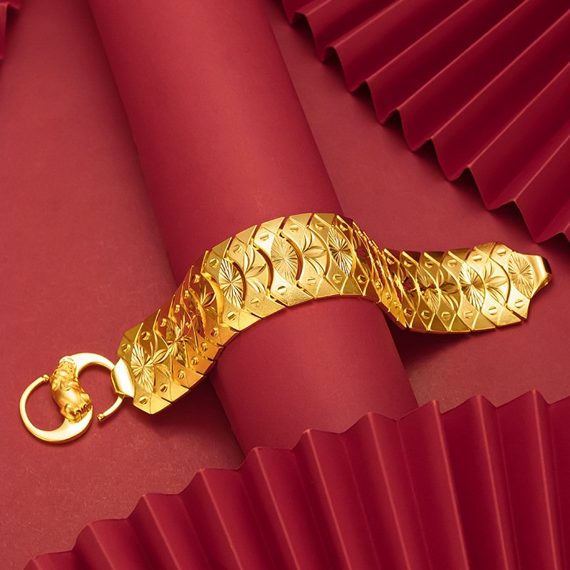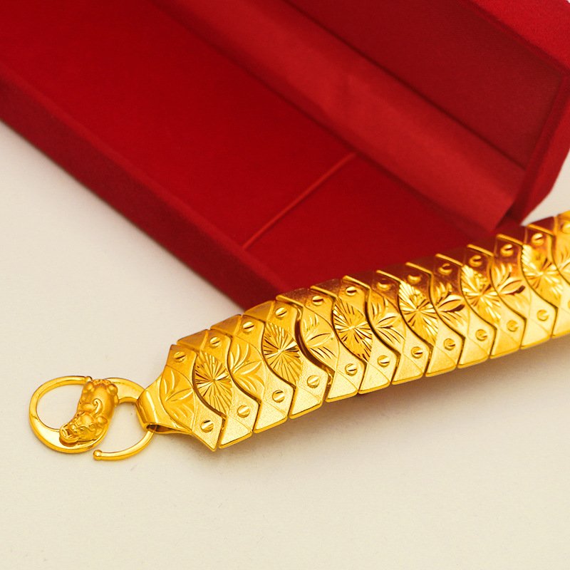 ✨Lắc tay nam to bản mạ 24k hoa văn sọc khóa tỳ hưu cao cấp A3