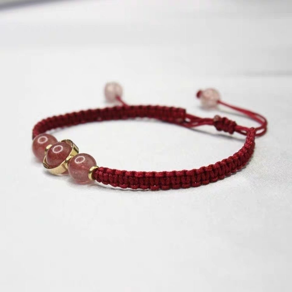 - Chất liệu : dây chỉ đỏ , hạt đá thach anh dâu Tây .