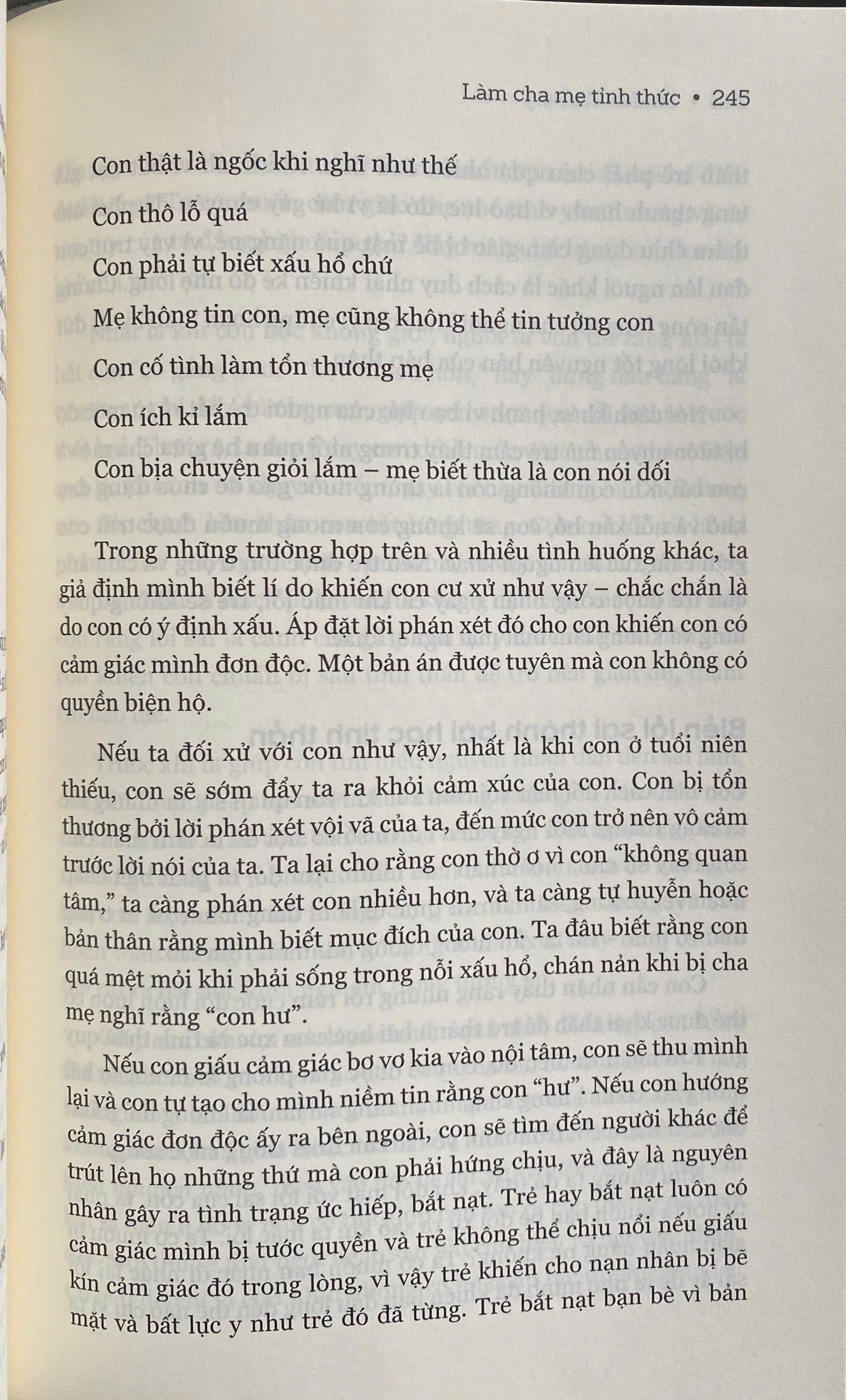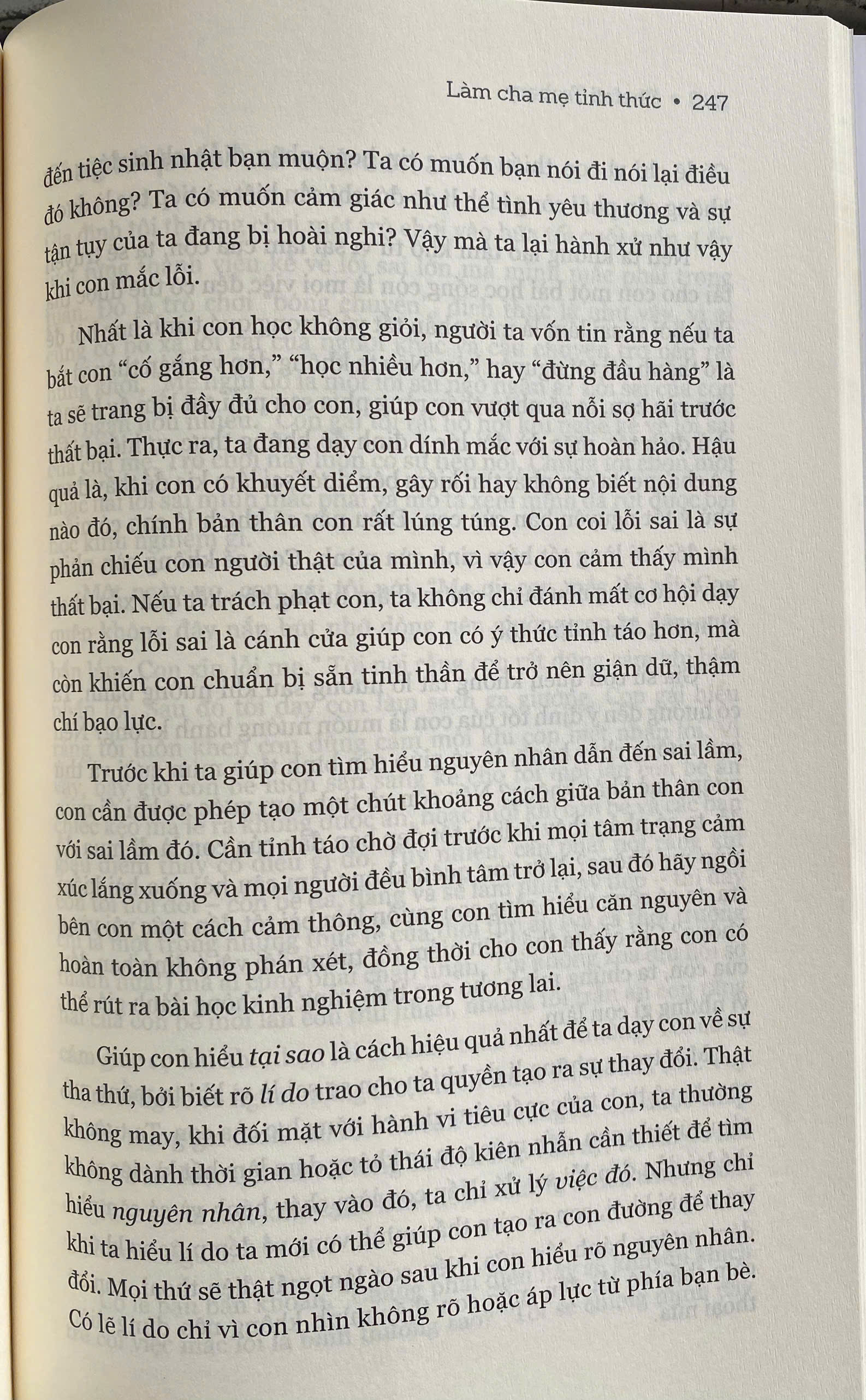 Khi nuôi dạy con cái, ta thường xuyên bắt gặp mình đứng trước cuộc chiến giữa lý trí và con tim, như luôn phải đi thăng bằng trên dây. Một phản ứng không phù hợp có thể làm khô héo tâm hồn con, ngược lại, một lời khen ngợi đúng lúc có thể tạo cảm hứng để con thăng hoa. Trong mỗi khoảnh khắc, ta đều phải lựa chọn xây hay phá, sưởi ấm hay làm nguội lạnh tâm hồn con trẻ.