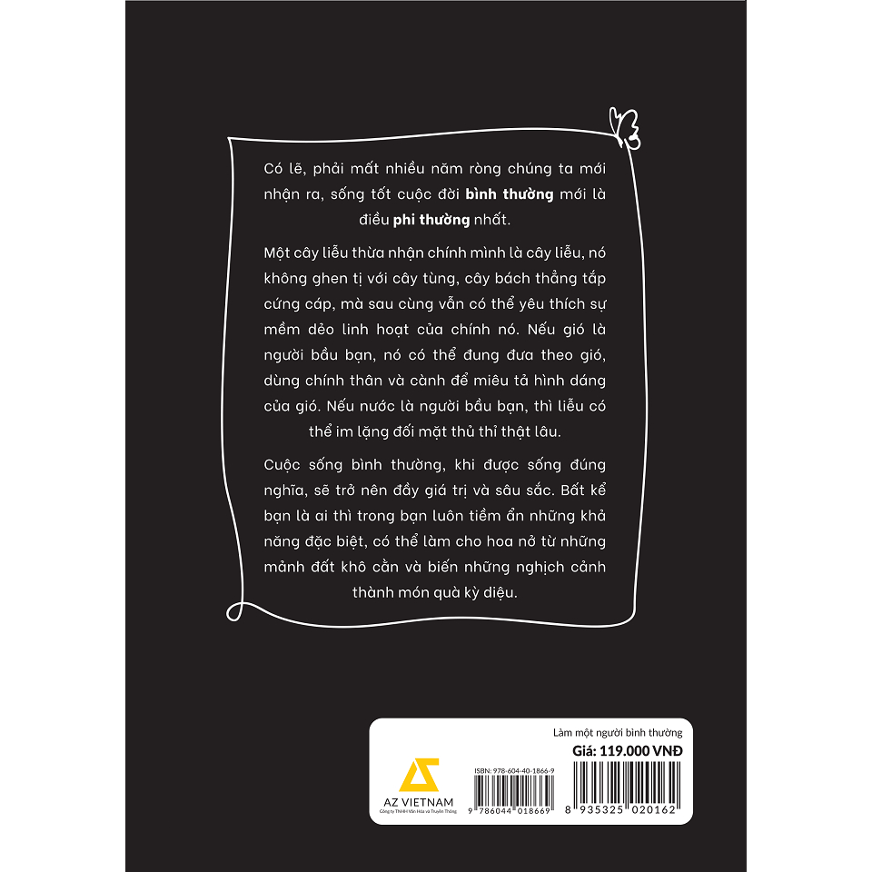 Làm Một Người Bình Thường Có lẽ, phải mất nhiều năm ròng chúng ta mới nhận ra, sống tốt cuộc đời bình thường mới là điều phi thường nhất.    Một cây liễu thừa nhận chính mình là cây liễu, ...