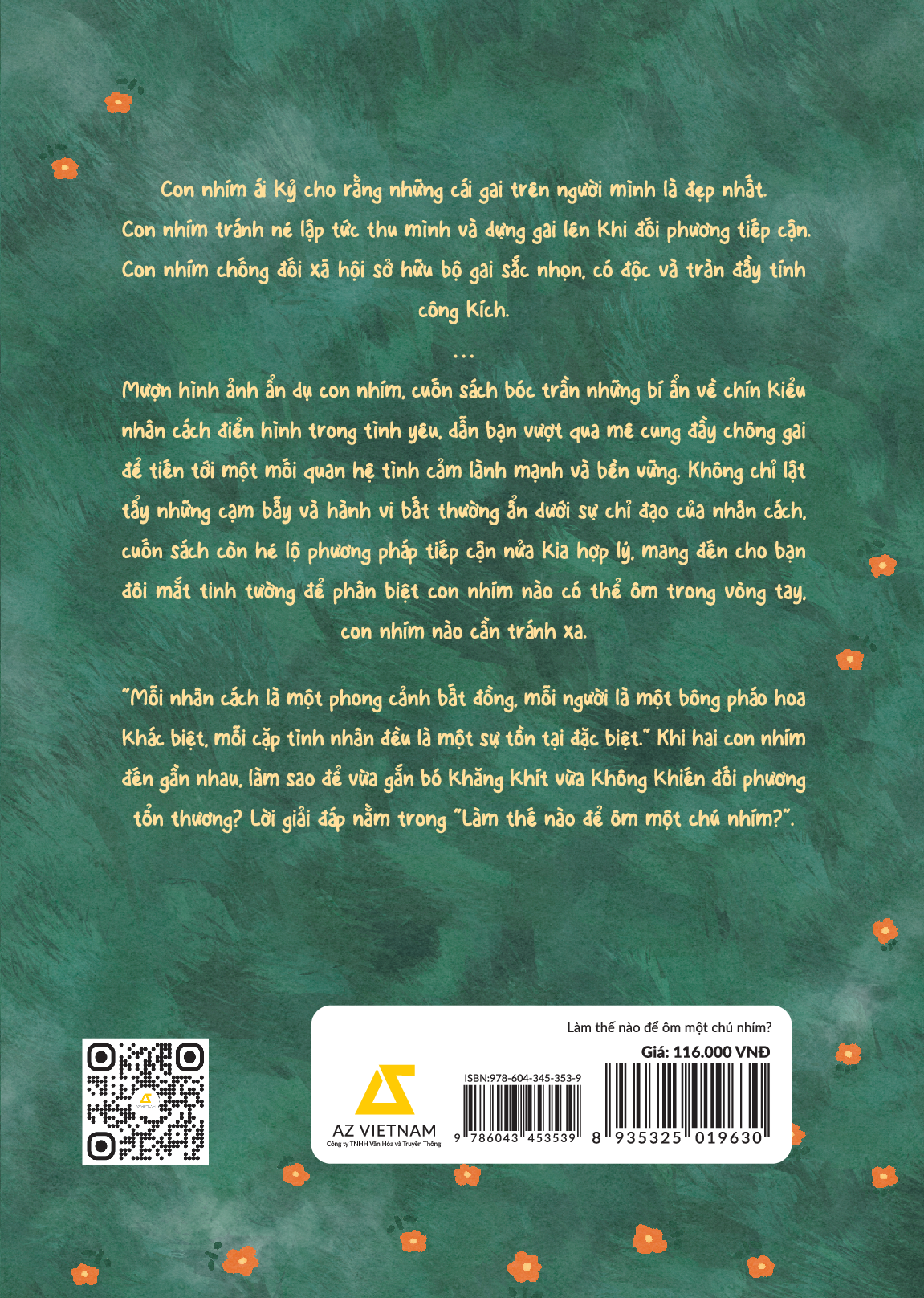 Mua tại TiktokLàm Thế Nào Để Ôm Một Chú Nhím? TÌM THẤY PHIÊN BẢN TỐT HƠN CỦA CHÍNH MÌNH QUA LĂNG KÍNH TÌNH YÊU “Bạn là người thế nào sẽ gặp được người thế ấy”. Cách chúng ta lựa chọn người yêu phản ánh nhu cầu và nỗi sợ bên trong mỗi người, chính nhân cách của chúng ta đã thu hút nhau. Hai người yêu nhau giống hai con nhím dịu dàng, vừa mong đợi được gần gũi với nhau vừa lo lắng làm đối phương tổn thương.