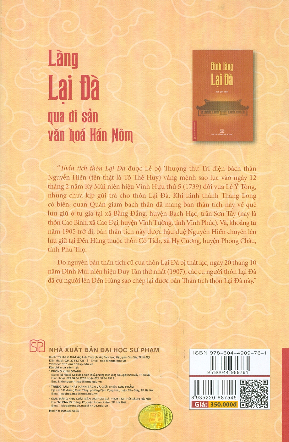 Cuốn sách Làng Lại Đà qua di sản văn hoá Hán Nôm gồm ba phần chính: Phần một giới thiệu về di sản Hán Nôm tại các di tích lịch sử, văn hoá của làng