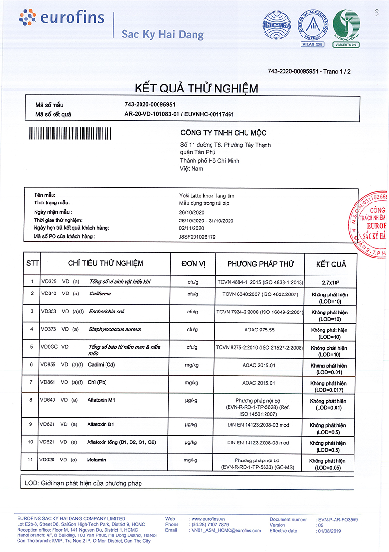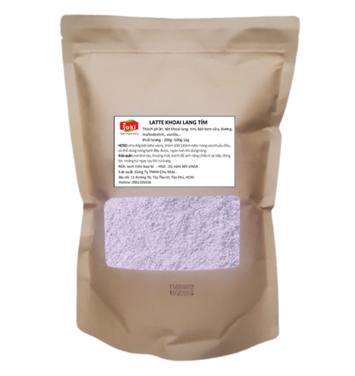 Khoai lang vốn là loại thực phẩm giàu dinh dưỡng, tốt cho tiêu hoá nên đã quá quen thuộc trong đời sống mỗi con người. Từ loại củ dân dã này, chúng ta có thể chế biến thành theo nhiều cách như luộc, chiên, nướng rồi làm bánh, mứt vô cùng đa dạng. Nhờ hương vị ngọt bùi mà những món ăn từ khoai này đều gây thương nhớ, xuất hiện trong menu từ quán vỉa hè bình dân tới các nhà hàng. Vào mùa đông, ở xứ sở Kim chi thường chìm trong tuyết trắng và sự lạnh buốt. Bởi vậy những quầy bán đồ nóng luôn tấp nập người mua trong đó có món khoai lang nướng vừa nóng hổi lại vừa ngọt lịm. Dần dà, người dân nơi đây đã nâng cấp tình yêu khoai lang lên một tầng cao mới, sáng tạo nên loại thức uống đậm vị ấm áp dành riêng cho mùa lạnh từ loại củ này với tên gọi Goguma latte (latte khoai lang).    Bên cạnh việc tự tay pha chế Goguma latte ở nhà, món đồ uống này cũng xuất hiện trong menu nhiều tiệm cà phê ở mức giá khá cao hoặc trên kệ các cửa hàng tiện lợi dưới dạng đồ uống pha sẵn ở các cửa hàng tiện lợi, nhanh gọn phục vụ giới trẻ bận rộn. Nhờ sở hữu độ ngon không kém các ly Goguma tươi, sản phẩm pha sẵn cũng được giới trẻ Hàn ưa chuộng, đặc biệt trong ngày đông giá rét. Có hai loại Goguma latte là khoai lang vàng và khoai lang tím còn được gọi là Purple latte.    Một trong những thức uống thường được nhiều người săn đón phải kể đến Latte Khoai lang tím. Được chế biến từ các nguyên liệu an toàn, không phẩm màu, chiết xuất của rau củ tự nhiên, Purple Latte không chỉ tốt cho sức khỏe mà còn đảm bảo màu sắc tươi tắn và hương vị mới lạ. Nói đến đây thì chắc hẳn team chị em làng mạn, yêu màu tím mộng mơ sẽ nhộn nhạo rồi hen.     Không phụ lòng các tín đồ tím lịm, nhấp một ngụm Purple Latte ấm nóng, điều đầu tiên bạn cảm nhận được là hỗn hợp có độ sánh vừa phải, có màu tím nhẹ nhàng, lãng mạn như cô gái mộng mơ. Đặc biệt, vị bùi của thức uống này rất rõ rệt. Khó có thể tưởng tượng rằng món đồ uống pha sẵn này lại mang tới hương vị hệt như lúc ăn một củ khoai lang tím thứ thiệt. Bên cạnh đó, chút ngậy béo của sữa ngay lập tức cảm thấy ấm bụng, thậm chí đỡ đói hơn hẳn.    Với Latte Khoai lang tím Yoki, chỉ chưa đầy 5 phút, bạn đã tự pha cho mình cùng bạn bè, người thân cốc Latte Khoai lang tím- Purple Latte sẽ có vị ngọt tự nhiên của khoai lang tím, kết hợp cùng hương vani, độ ngậy thơm của sữa và lợi ích dinh dưỡng từ khoai lang tím có khi "gây nghiện" luôn không chừng.   Latte Khoai lang tím Yoki có sức hấp dẫn đặc biệt với những tín đồ cuồng khoai lang tím, độ ngon của thức uống này cũng được nâng tầm khi được dùng với độ ấm nóng vừa phải. HSD: 12 tháng kể từ ngày sản xuất và 60 ngày kể từ ngày mở túi.  Sản xuất : Công ty TNHH Chu Mộc Địa chỉ: 11 đường T6, phường Tây Thạnh, quận Tân Phú, TP.HCM